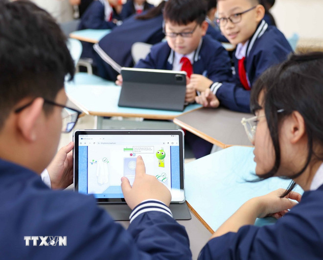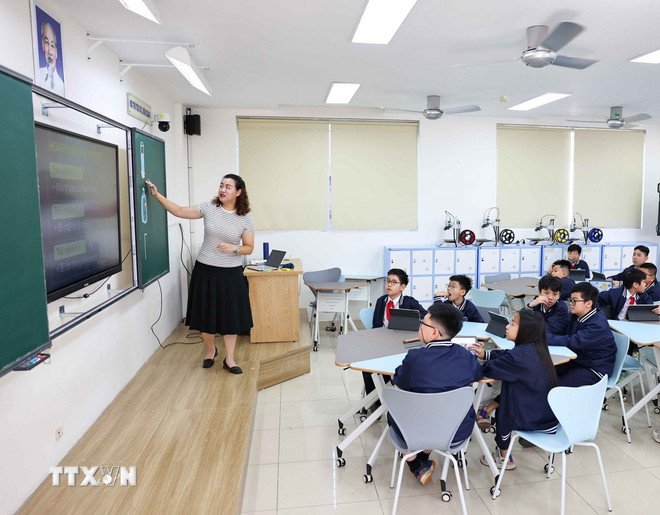 Với mục tiêu giáo dục toàn diện về đạo đức, trí tuệ, thể chất và năng lực cá nhân, nhà trường không ngừng đổi mới phương pháp giảng dạy, ứng dụng công nghệ và xây dựng môi trường học tập hiện đại, thân thiện, giàu giá trị nhân văn. (Ảnh: Thanh Tùng/TTXVN)