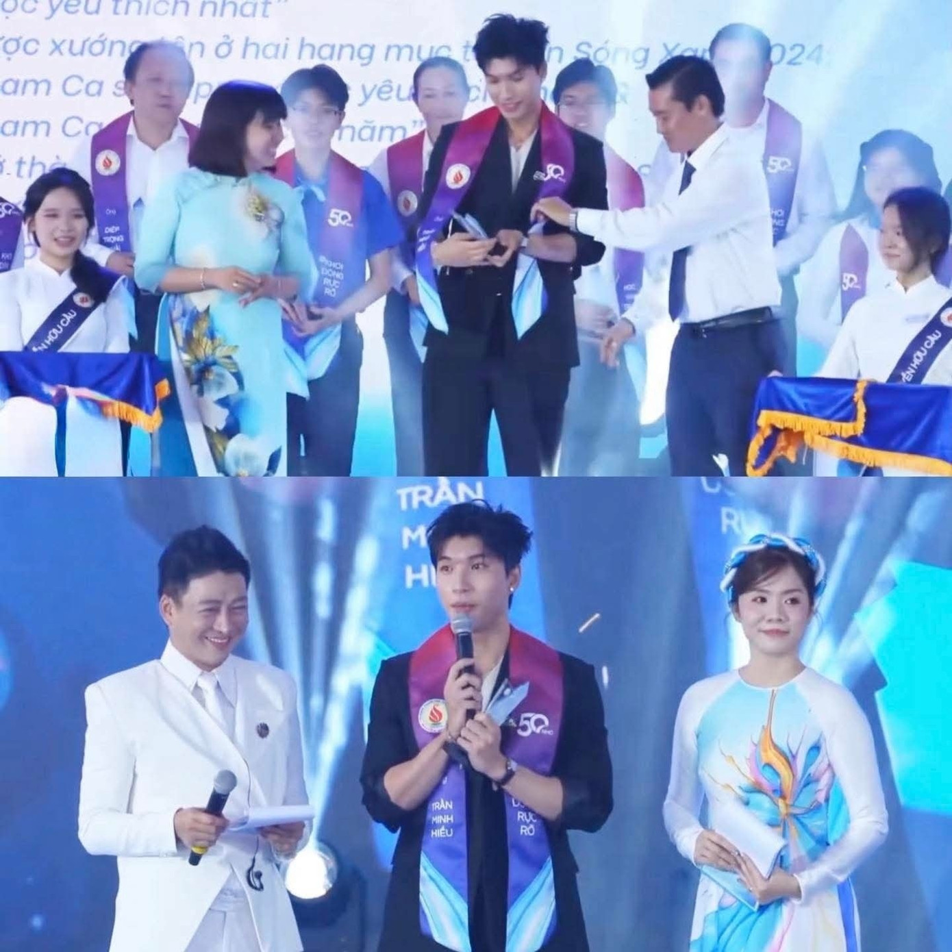 Khoảnh khắc lên sân khấu tuyên dương của "cựu học sinh". Nguồn: @fchieuthuhai2222.