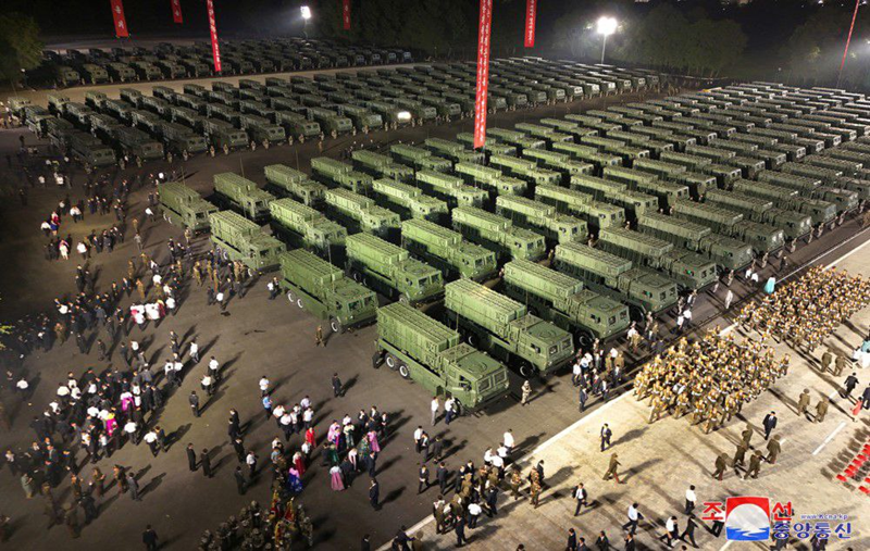 Hệ thống tên lửa phóng loạt (MLRS), rất giống với HIMARS của Mỹ xuất hiện trong cuộc duyệt binh quân sự tại Bình Nhưỡng - Ảnh: Truyền thông Triều Tiên