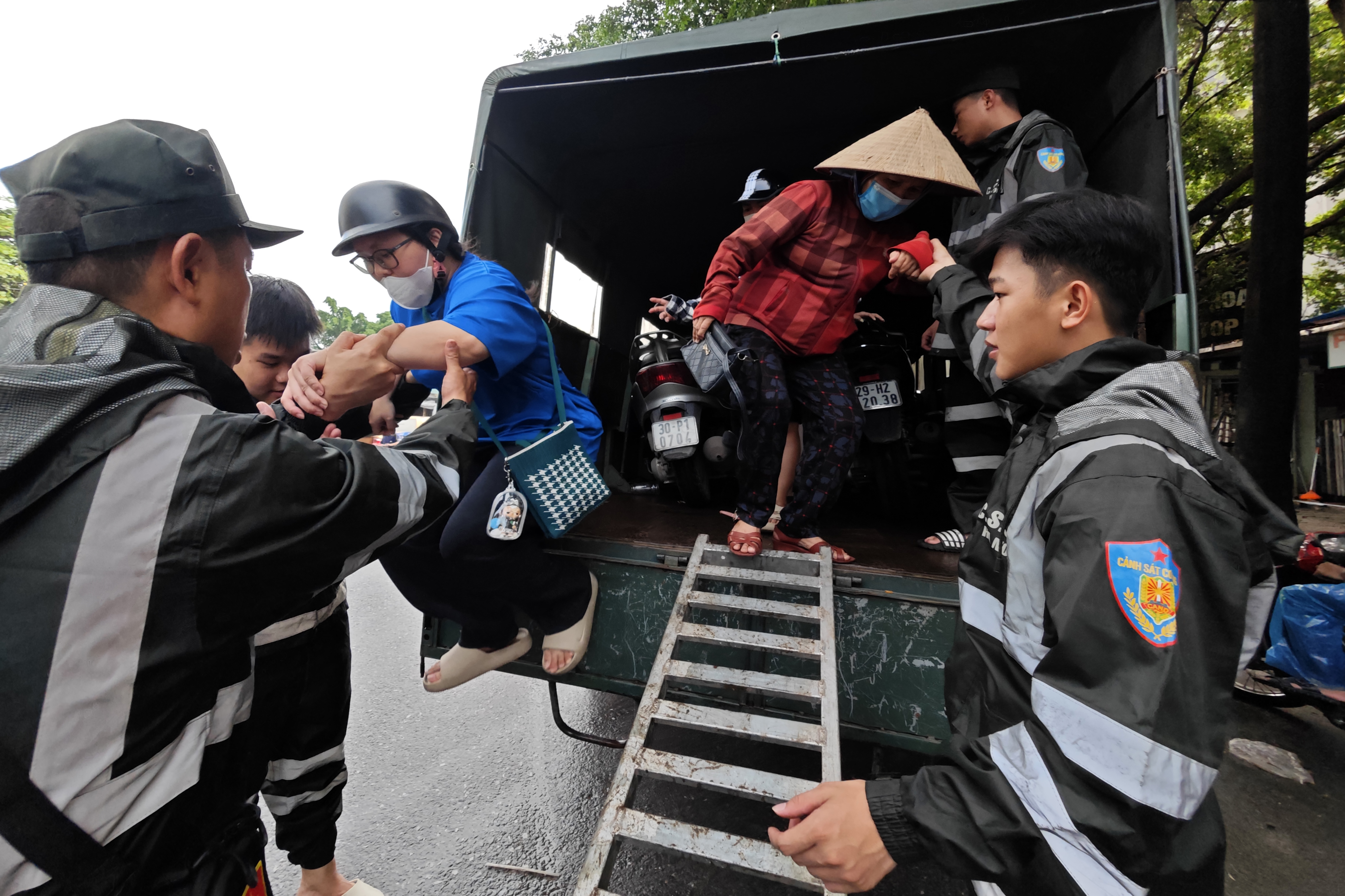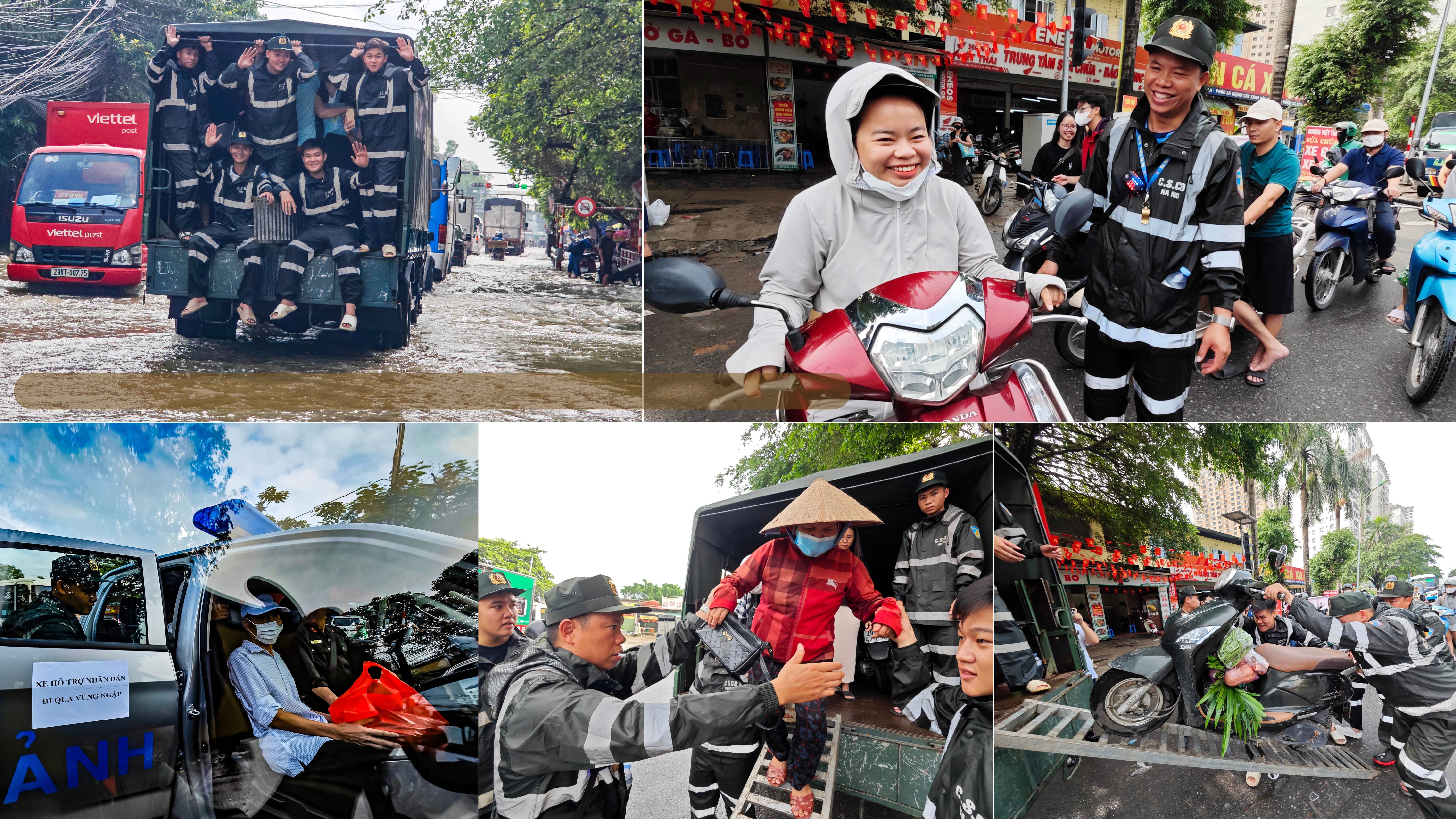 Giám đốc CATP Hà Nội đã chỉ đạo lực lượng Cảnh sát cơ động ứng trực với đầy đủ nhân lực, phương tiện để hỗ trợ người dân ở các điểm ngập sâu