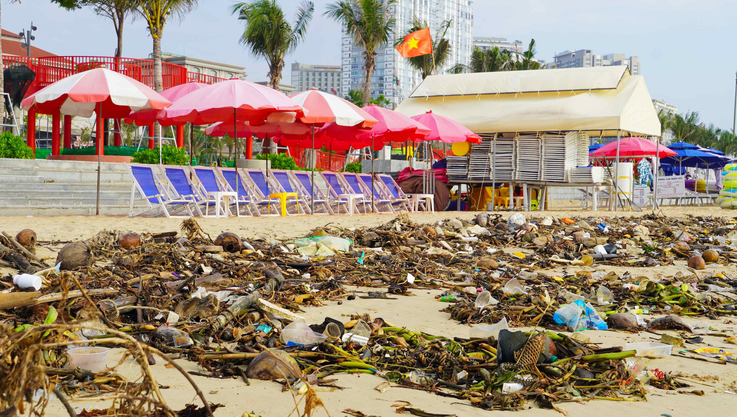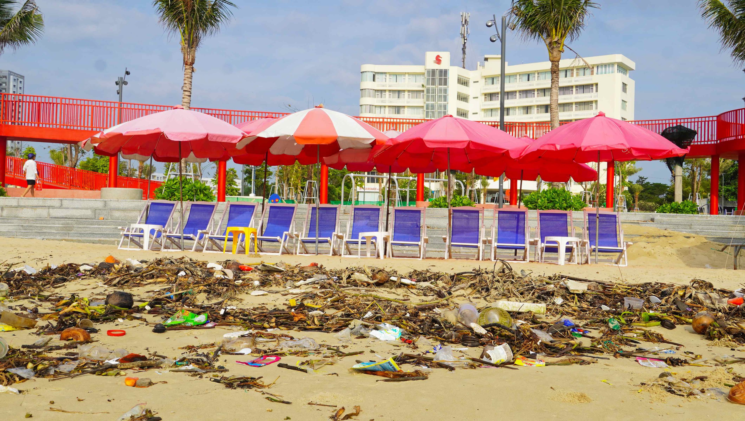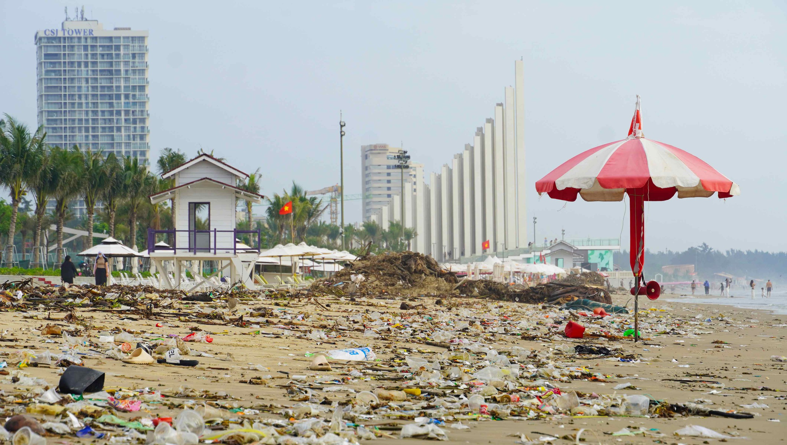 Khi những cơn gió mùa Đông Bắc tràn về cùng thủy triều dâng cao, Bãi Sau lại chứng kiến cảnh bãi tắm bị rác thải đại dương "tấn công" với quy mô chưa từng có. Những ngày giữa tháng 11, hơn 3 km bờ biển từ đường Phan Chu Trinh đến Khu du lịch Paradise bị phủ dày bởi lục bình, thùng xốp, túi ni-lông, đồ nhựa.