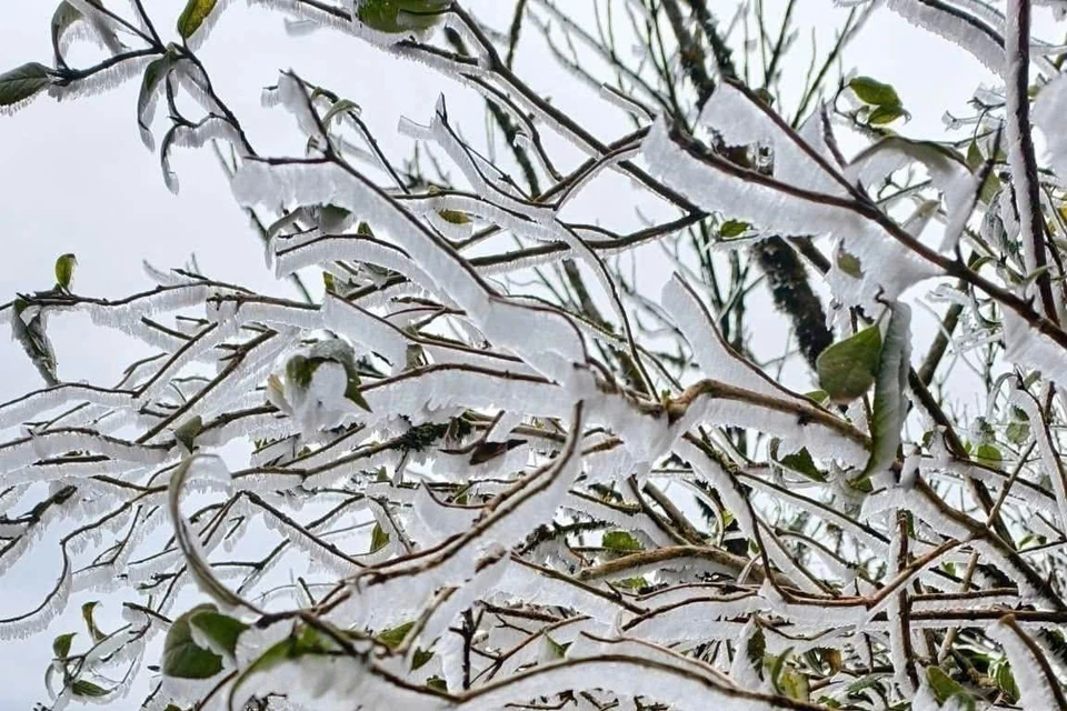 Đêm 26/1, tại huyện Mù Cang Chải (tỉnh Yên Bái) đã xuất hiện băng giá. (Ảnh: TTXVN phát)