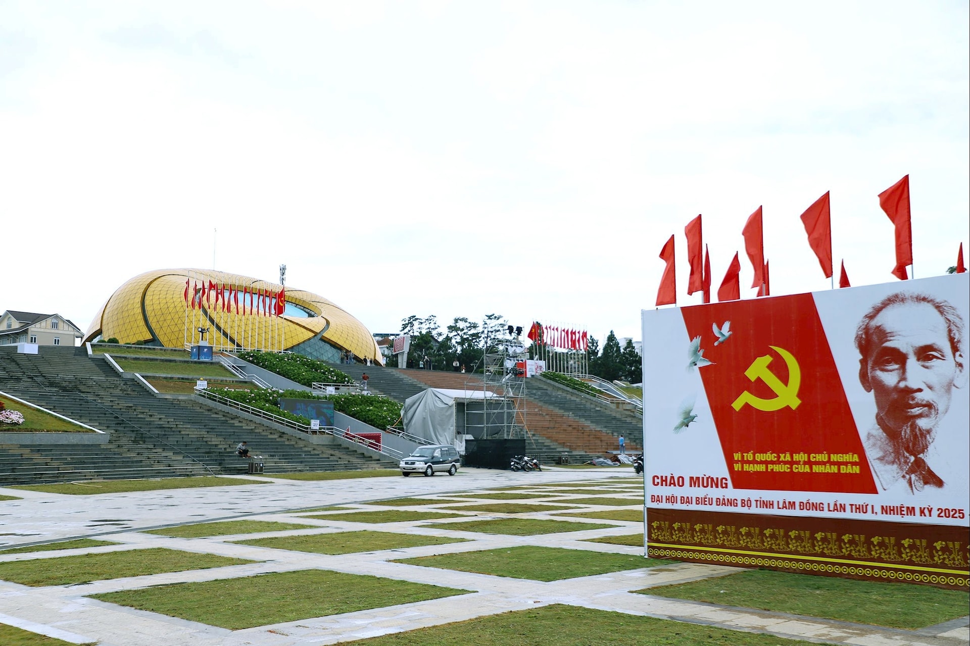 Quảng trường Lâm Viên trang trí nhiều pano, khẩu hiệu chào mừng Đại hội
