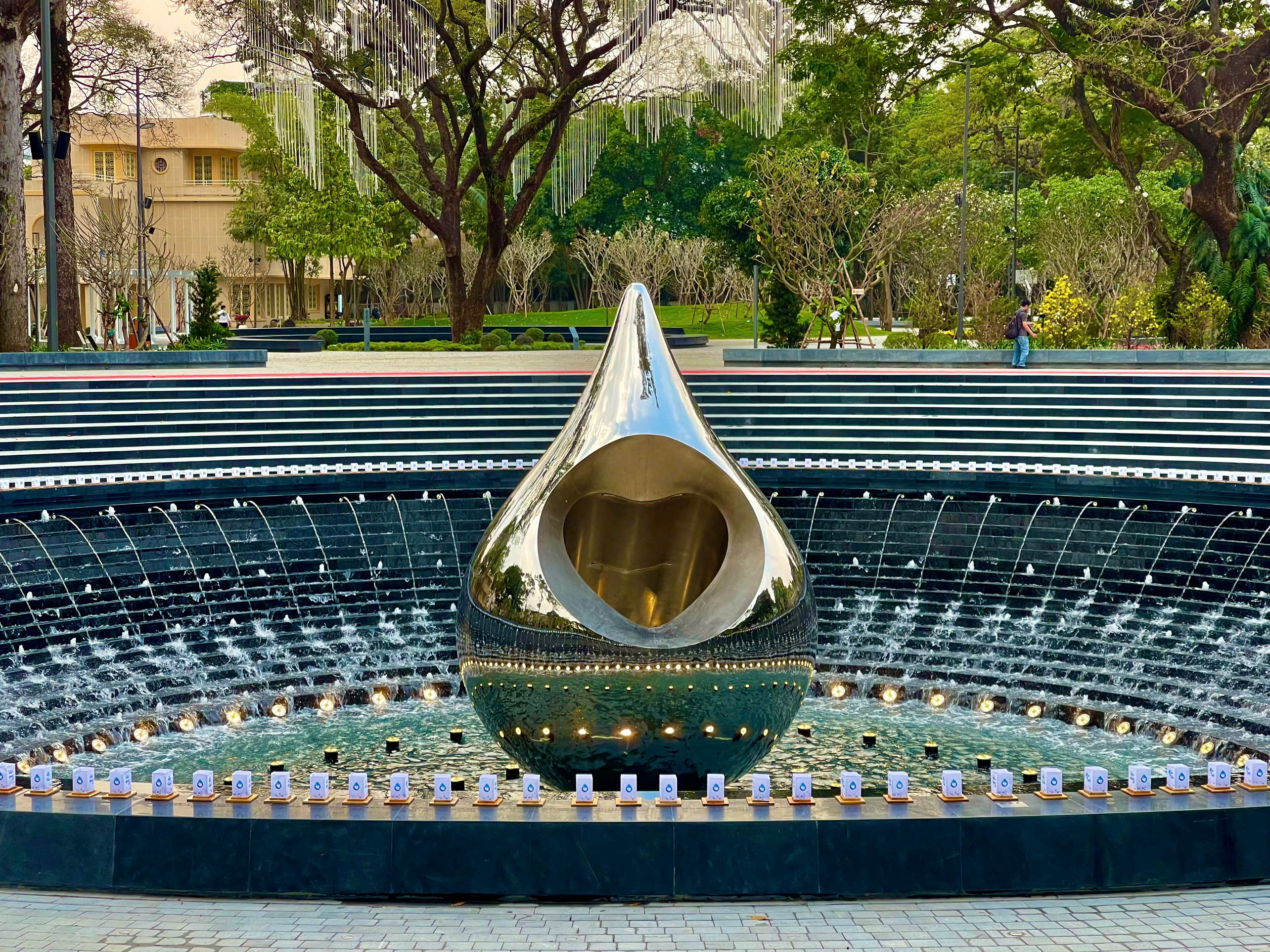 Biểu tượng "Giọt nước" tạo ấn tượng mạnh, là điểm nhấn của công viên. Ảnh: HOÀNG HÙNG