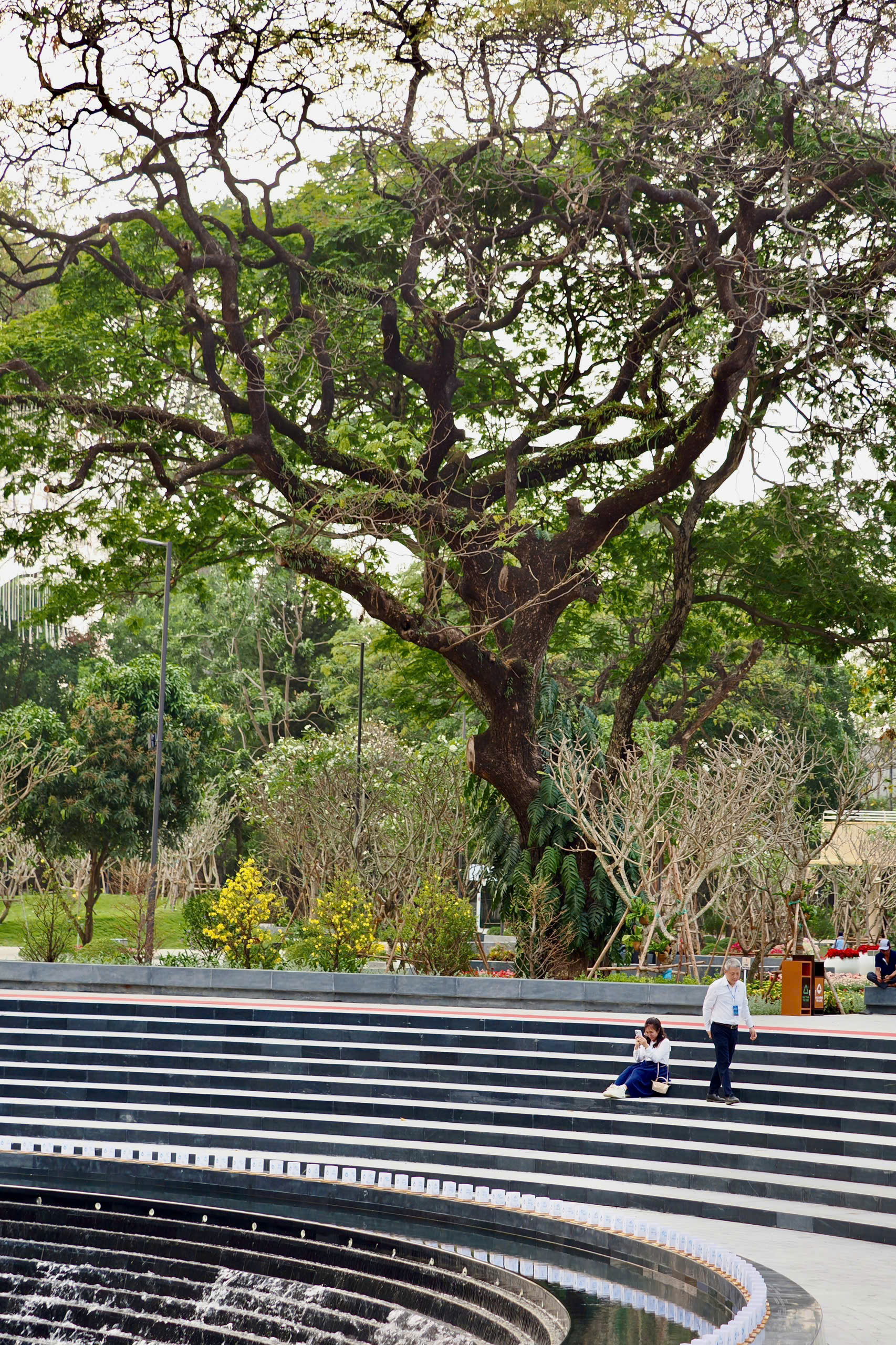 Những hàng cây cổ thụ tạo không gian xanh mát cho công viên. Ảnh: HOÀNG HÙNG