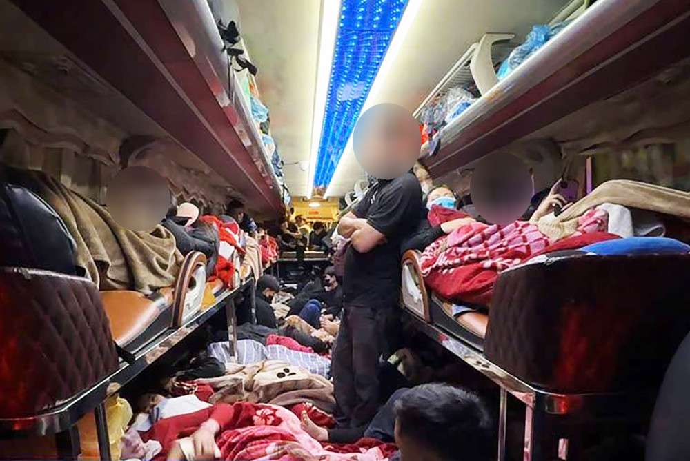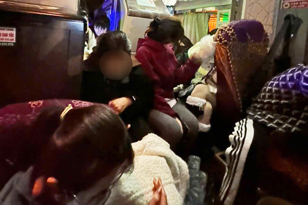 Nhiều hành khách phải ngồi ở sàn xe. Ảnh: CACC
