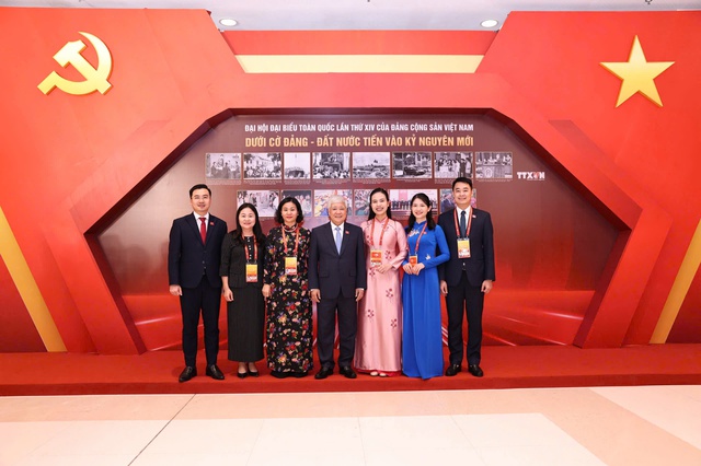 Nguyên Tổng Bí thư Nông Đức Mạnh (thứ 12 từ phải qua), nguyên Chủ tịch nước Nguyễn Minh Triết (thứ 11 từ phải qua) chụp ảnh lưu niệm với các đại biểu.