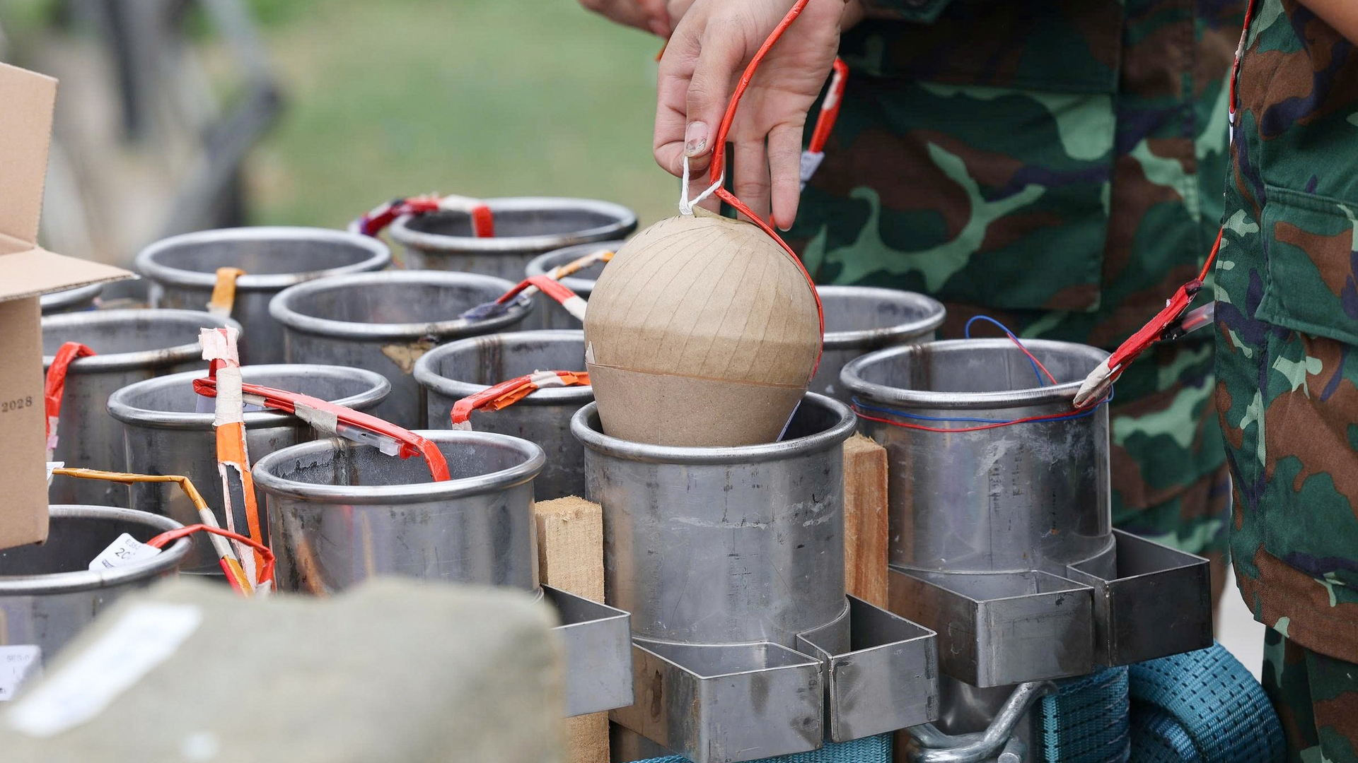 Từng quả pháo, kíp nổ được đưa vào ống phóng, thực hiện đúng quy trình kỹ thuật nghiêm ngặt.