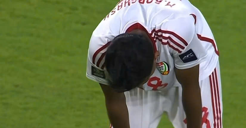 Khuôn mặt nhăn nhó, hơi thở gấp gáp, rồi động tác giơ hai tay xin thay ra và cúi gập người xuống mặt cỏ là minh chứng không thể rõ ràng hơn cho việc thể lực cạn kiệt. Chỉ hai phút sau, anh buộc phải rời sân, khi ban huấn luyện UAE không còn lựa chọn nào khác.