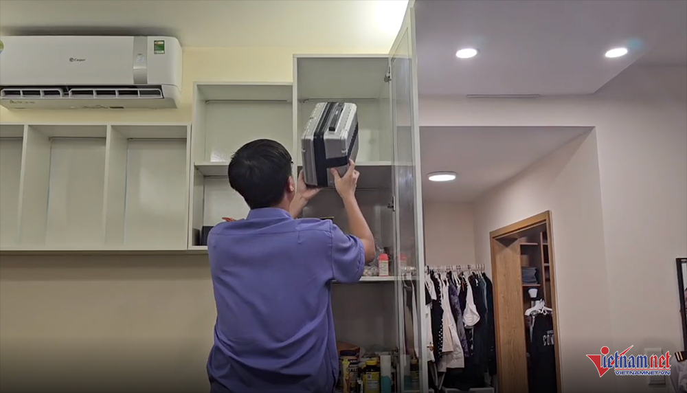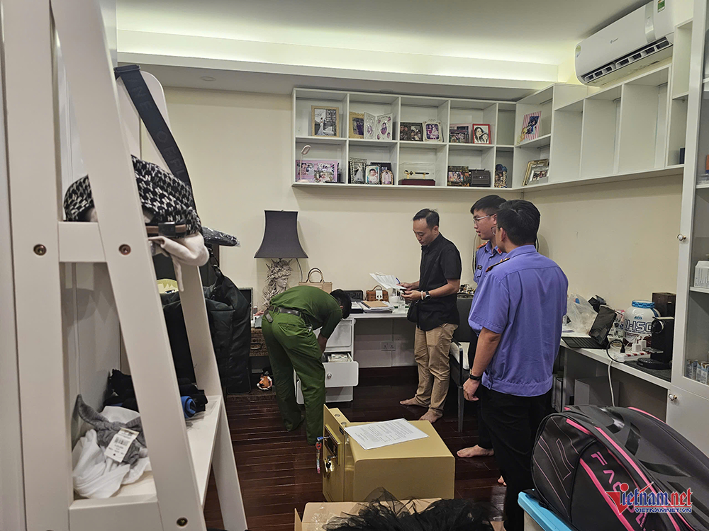 Tại buổi khám xét, lực lượng công an thu giữ một số giấy tờ, tài liệu phục vụ công tác điều tra. Ngoài ra, cơ quan chức năng yêu cầu người nhà mở một vali và một két sắt để kiểm tra. Lực lượng chức năng cũng đã niêm phong, thu giữ một iPad mà Trương Ngọc Ánh sử dụng. Trong ảnh: Việc khám xét nơi ở của Trương Ngọc Ánh có sự chứng kiến của người nhà nữ diễn viên, người mẫu.