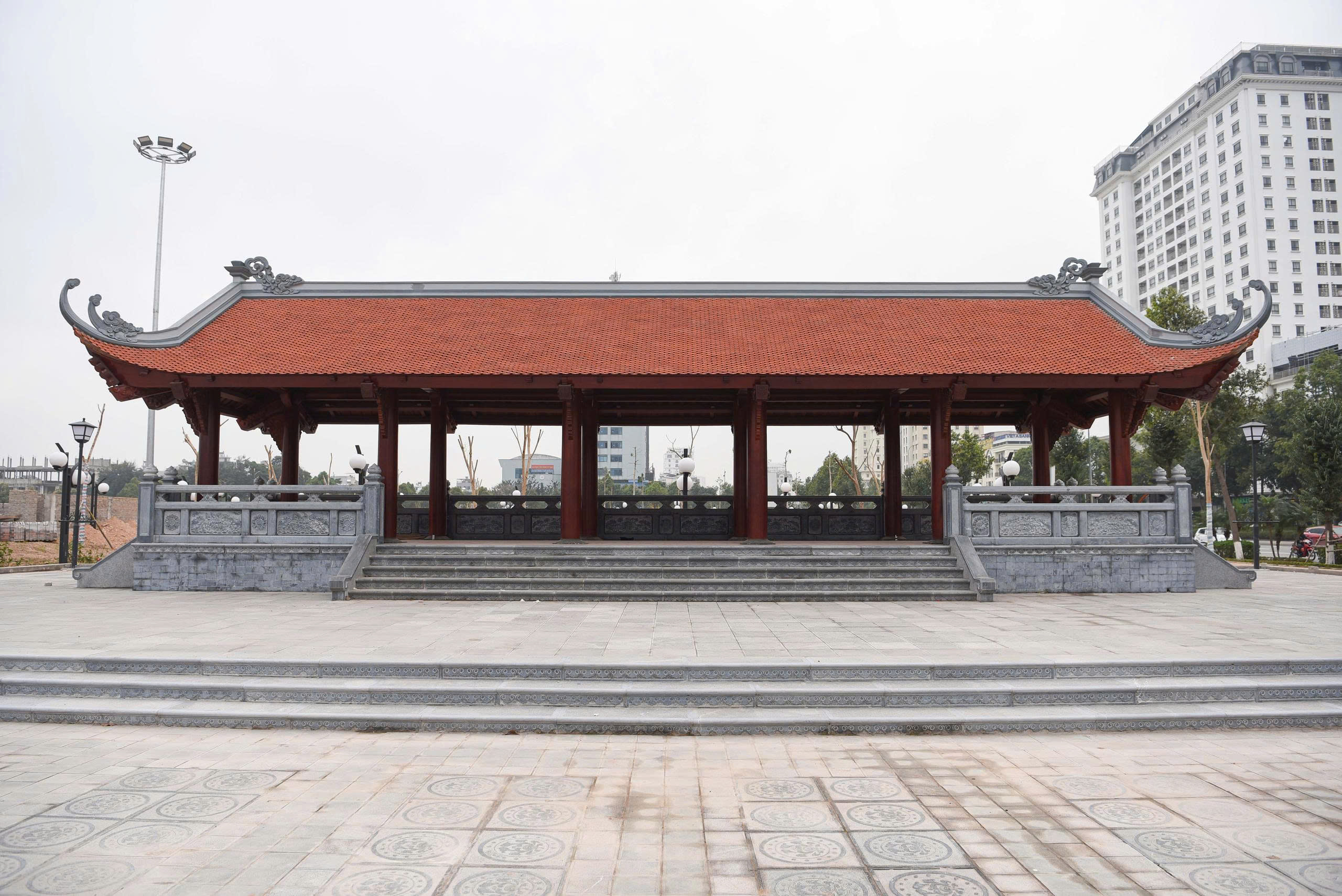 Ông Nguyễn Quốc Kỳ, cán bộ Ban Quản lý dự án xây dựng Kinh Bắc (đơn vị chủ đầu tư dự án công viên Văn Miếu) cho biết, để kịp tiến độ, nhà thầu đã huy động tối đa nhân lực, thiết bị máy móc thi công các hạng mục như đền thờ Bác Hồ, khu quảng trường, khu nhà phụ trợ, hồ sen, sân đoàn kết…