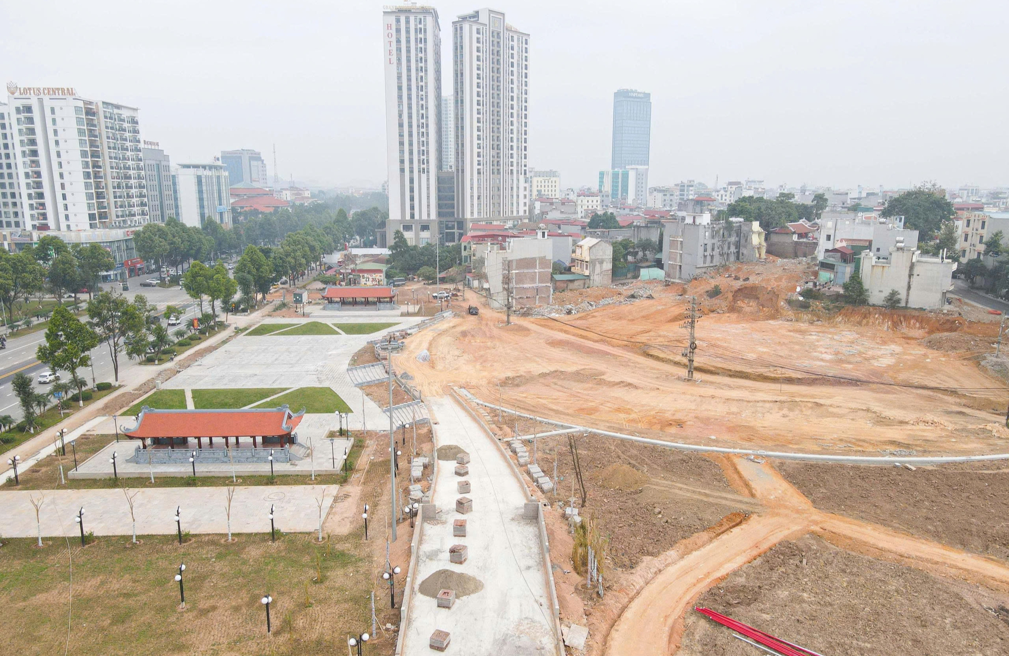 Ông Vương Ngọc Thông, Trưởng phòng Quản lý và phát triển quỹ đất (Chi nhánh trung tâm phát triển quỹ đất Kinh Bắc) cho biết, mặt bằng của dự án công viên Văn Miếu cơ bản đã bàn giao cho đơn vị thi công.