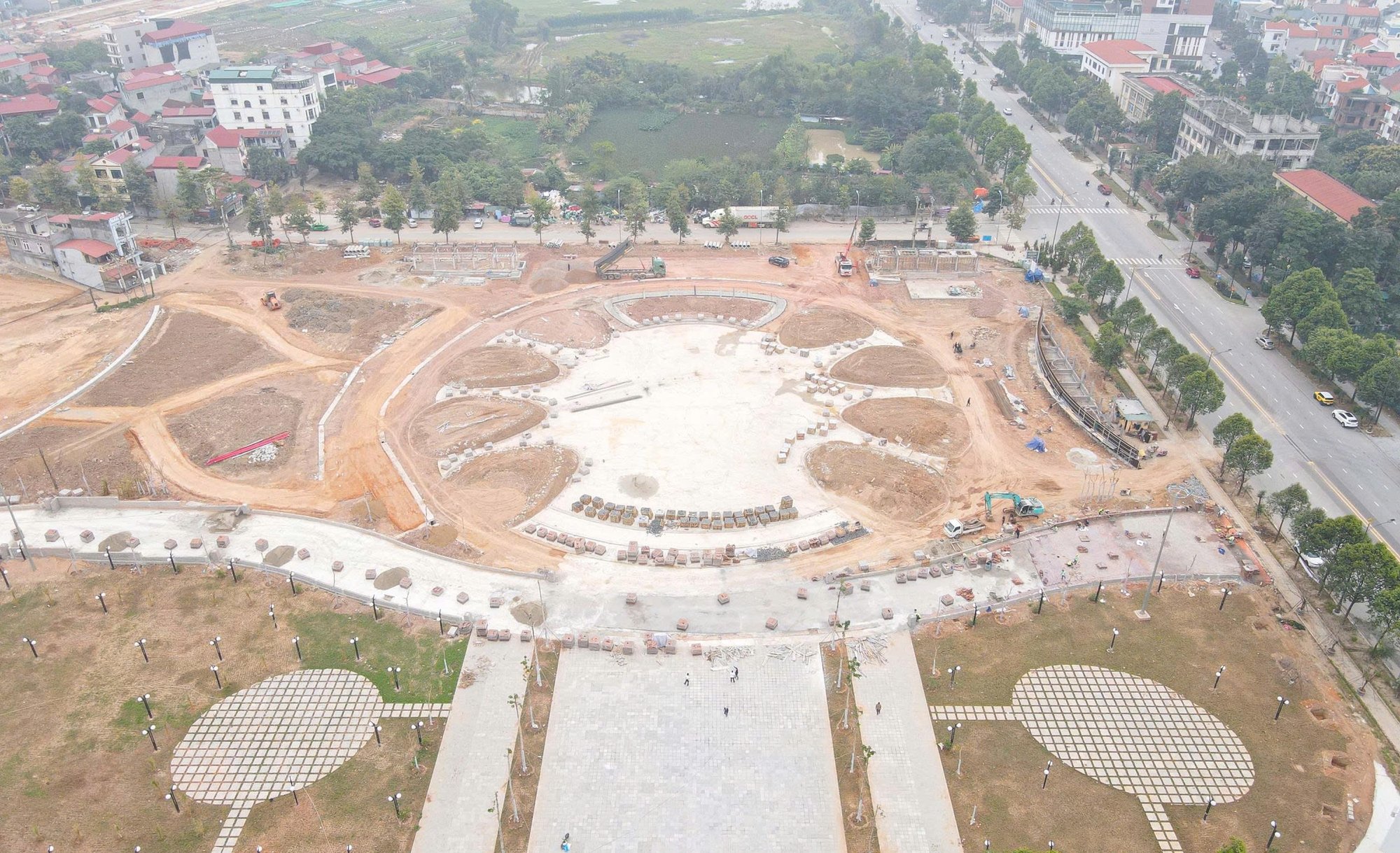 Những ngày giữa tháng 1, hàng chục công nhân, máy móc đang miệt mài xây dựng những hạng mục quan trọng tại dự án đầu tư xây dựng hạ tầng kỹ thuật và các công trình phụ trợ công viên Văn Miếu (trên địa bàn phường Kinh Bắc và Võ Cường, tỉnh Bắc Ninh).