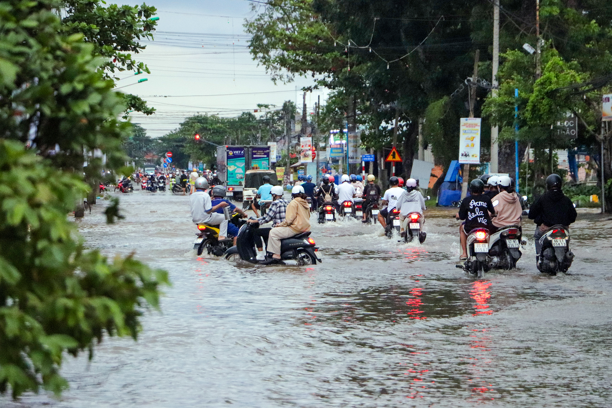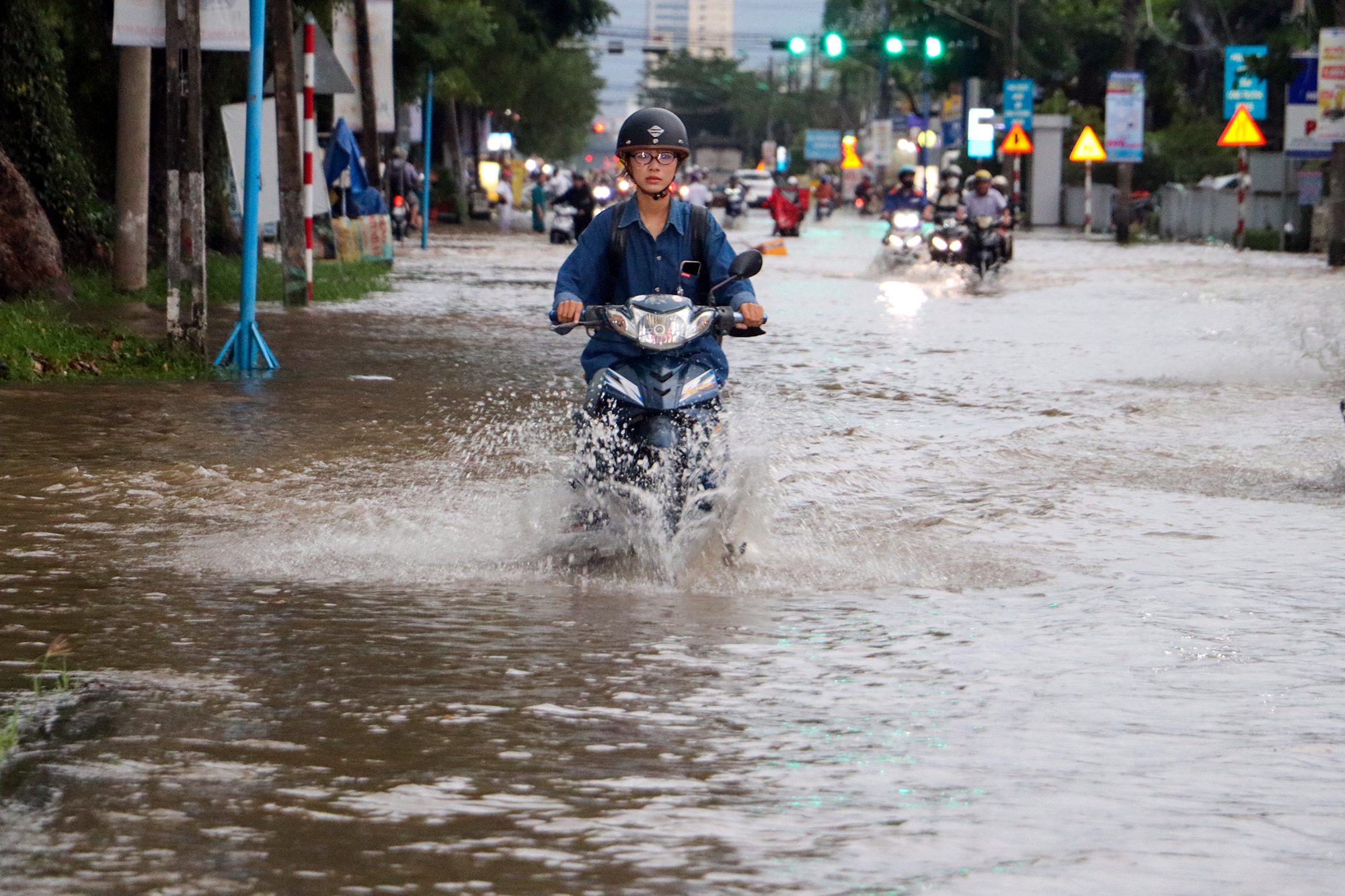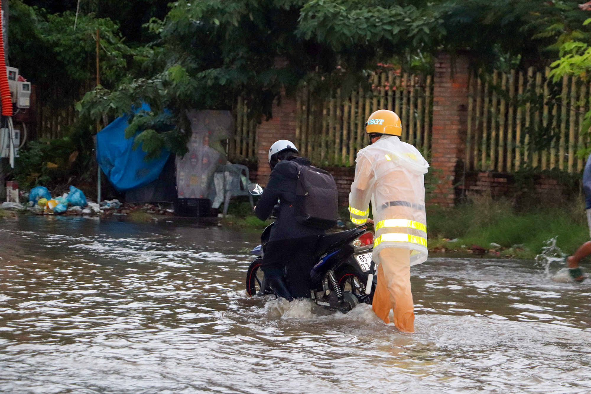 Có đoạn nước ngập hơn nữa bánh xe máy.