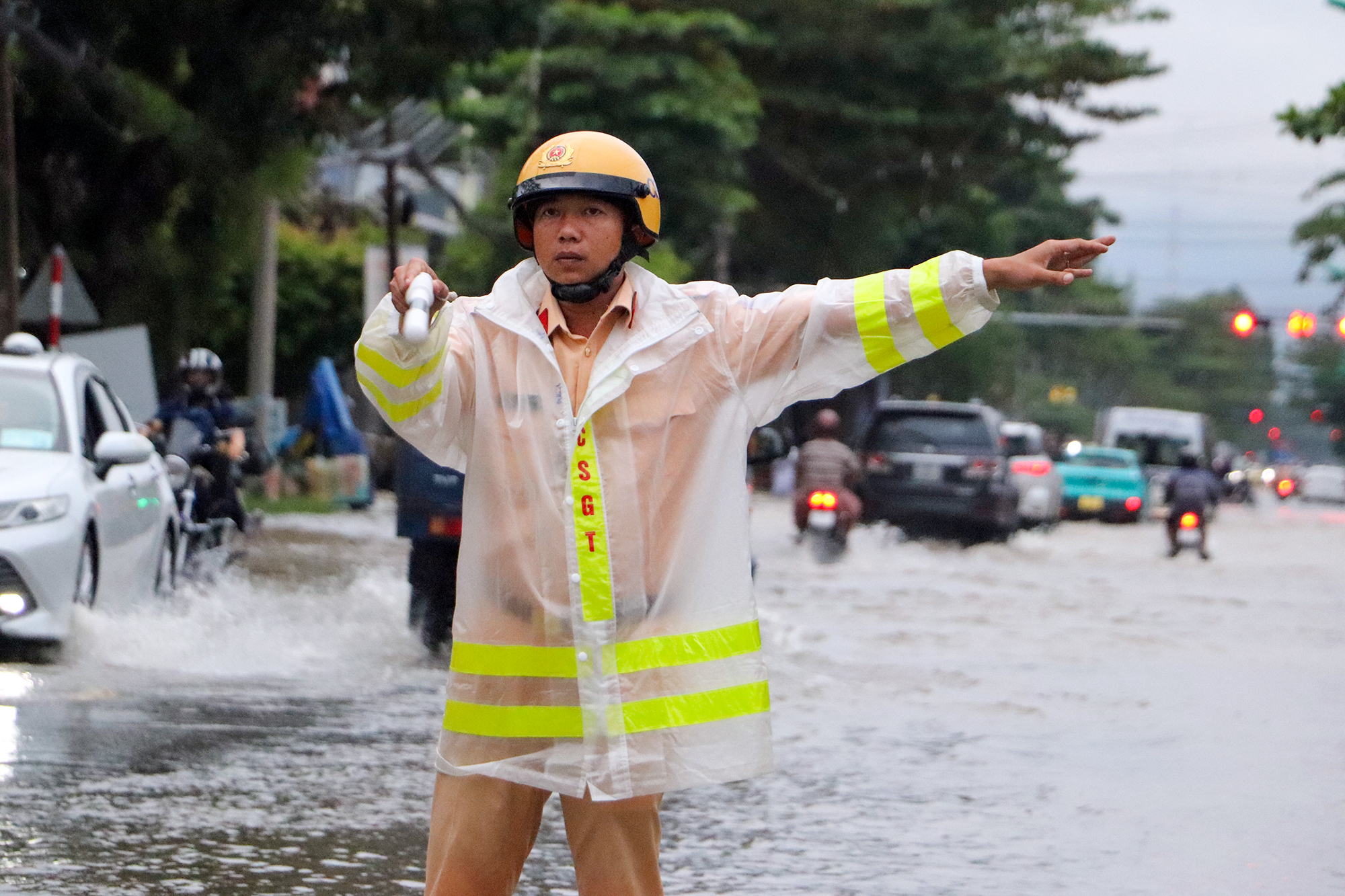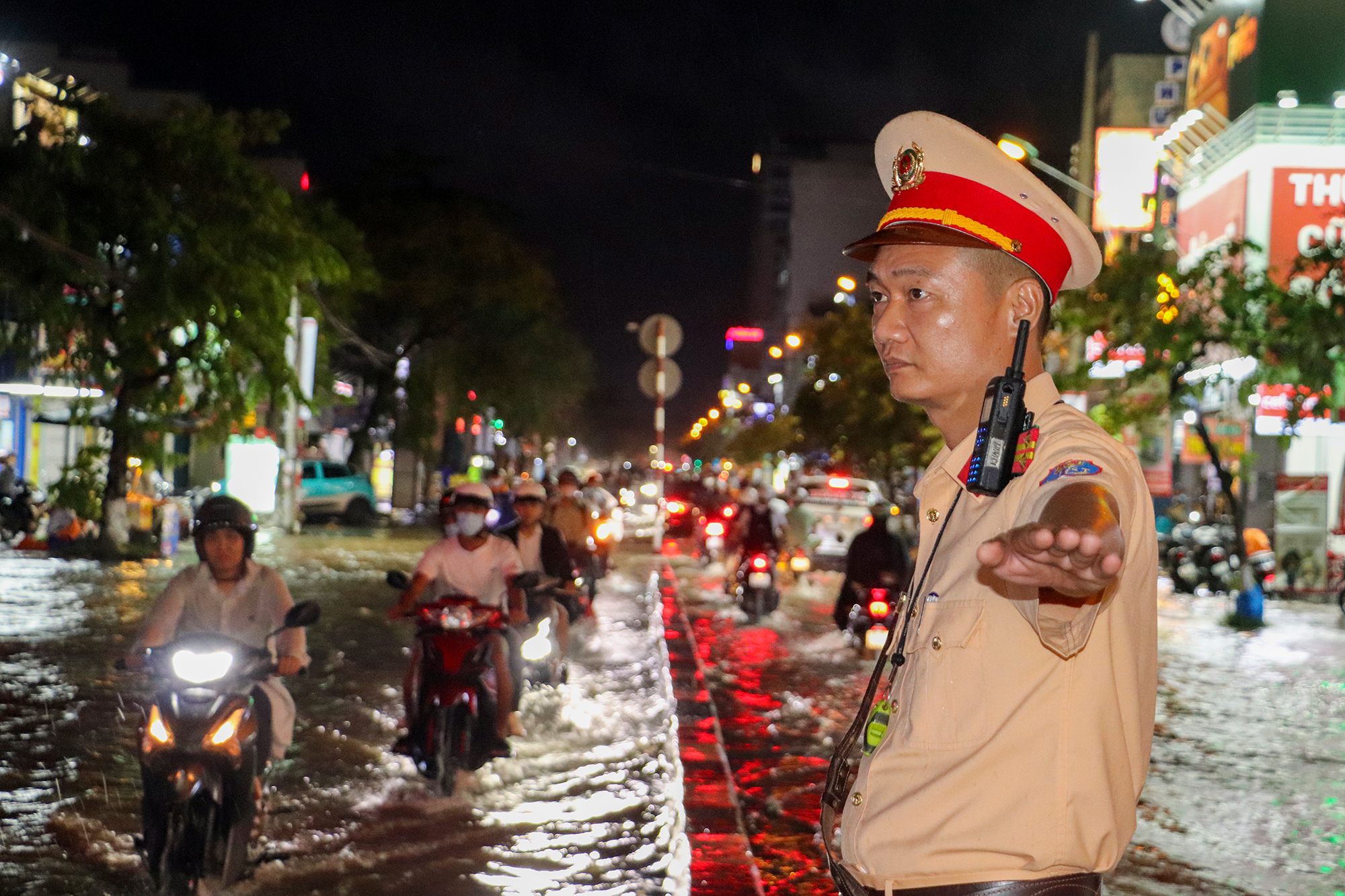 Đội CSGT số 1, số 2 thuộc Phòng CSGT Công an TP Cần Thơ đã chốt trực, phân luồng, điều tiết giao thông tại khu vực bị ngập nước.