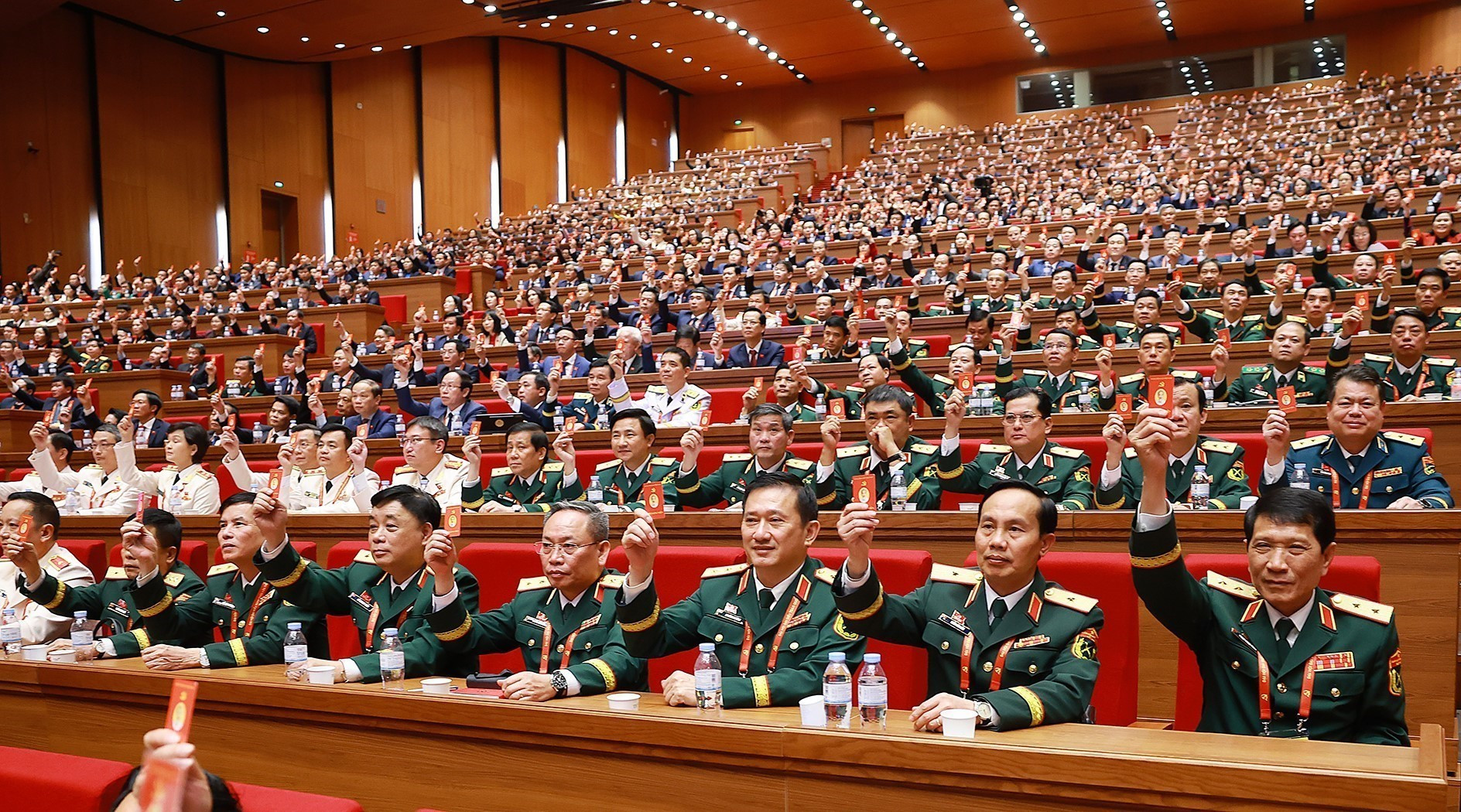 Các đại biểu biểu quyết thông qua danh sách bầu cử Ban chấp hành Trung ương Đảng khóa 14. Ảnh: TTXVN