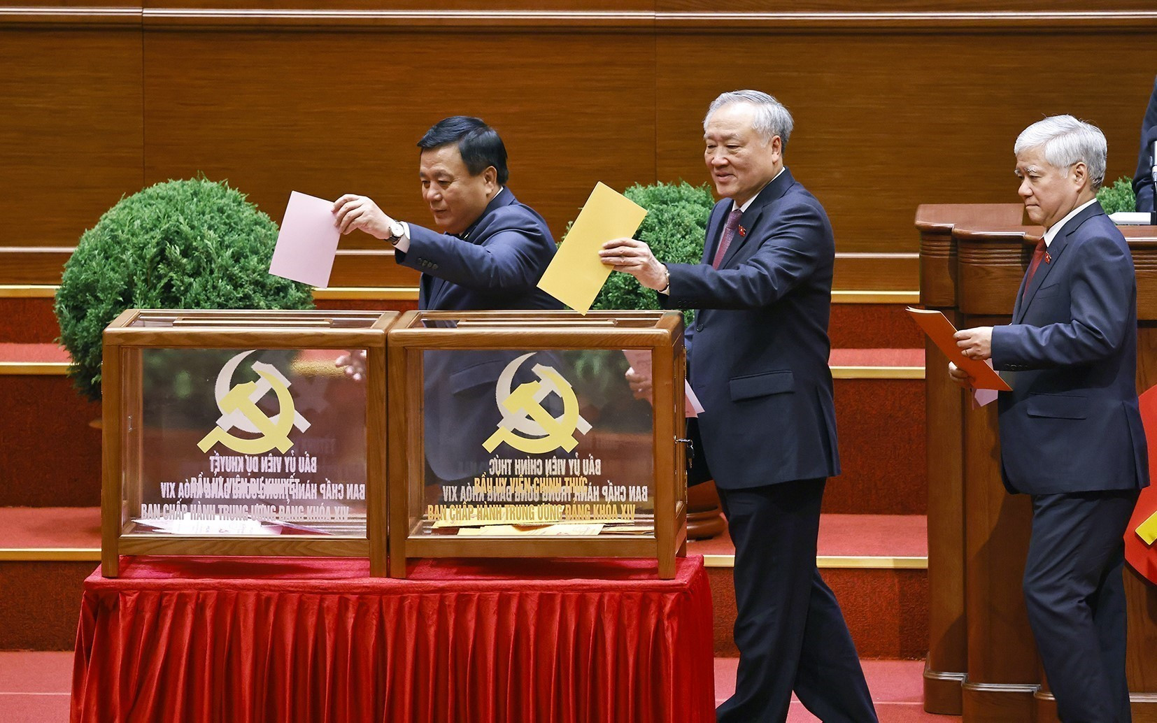 Các đại biểu bỏ phiếu bầu Ban chấp hành Trung ương Đảng khóa 14. Ảnh: TTXVN