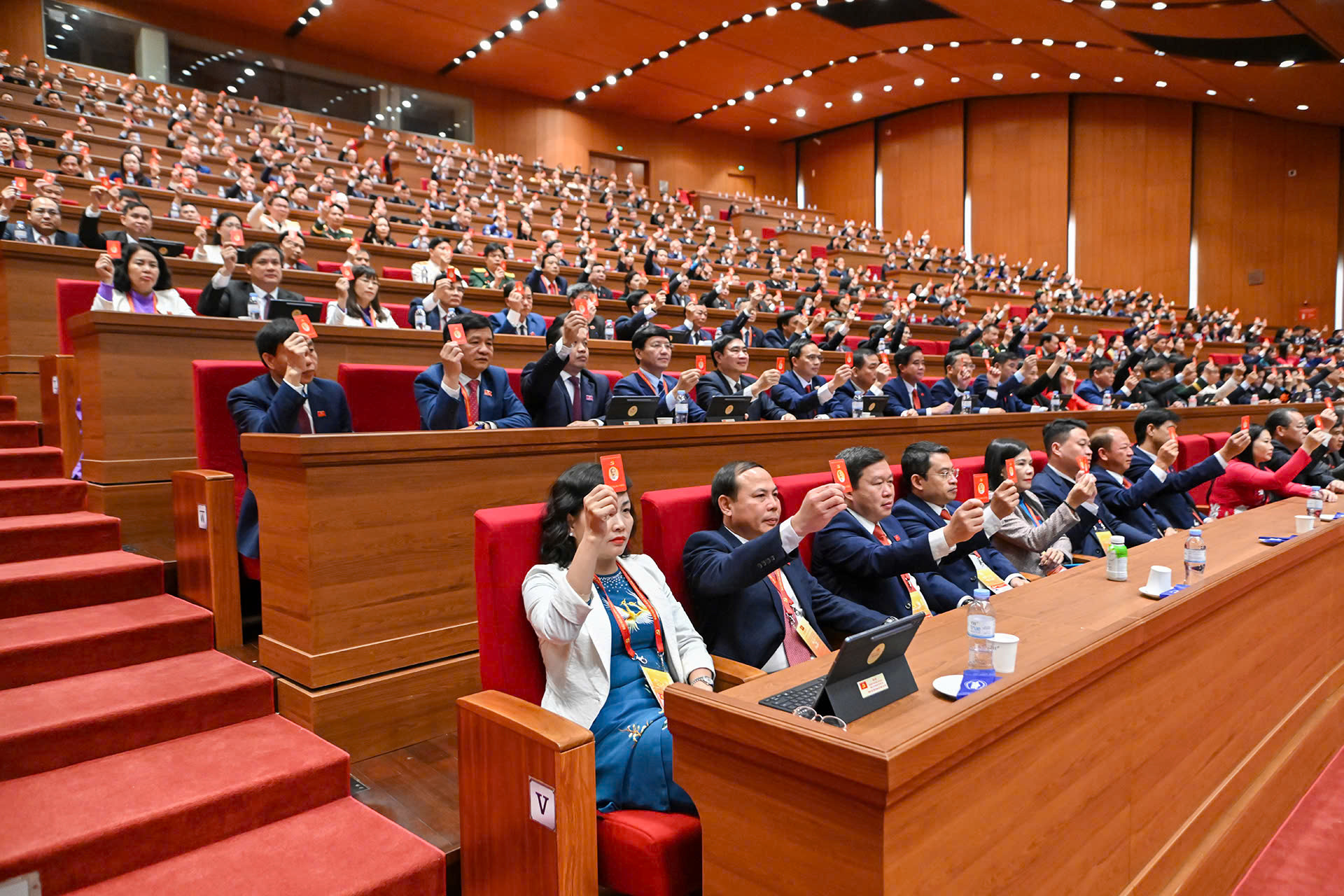 Các đại biểu biểu quyết thông qua danh sách bầu cử Ban chấp hành Trung ương Đảng khóa 14