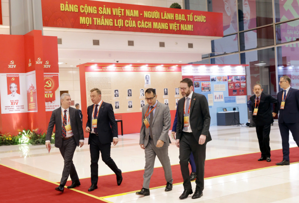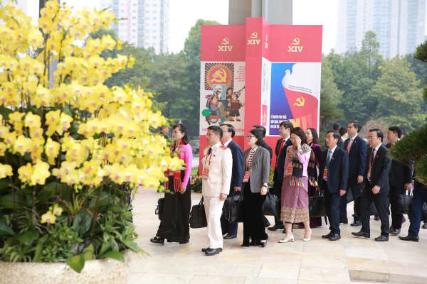 Đồng chí Thường trực Ban Bí thư giới thiệu đại biểu cho biết, dự Đại hội XIV của Đảng có các đồng chí lãnh đạo, nguyên Tổng Bí thư Nông Đức Mạnh; nguyên Chủ tịch nước Nguyễn Minh Triết; nguyên Chủ tịch nước Trương Tấn Sang; nguyên Thủ tướng Nguyễn Tấn Dũng; nguyên Chủ tịch Quốc hội Nguyễn Văn An; nguyên Chủ tịch Quốc hội Nguyễn Sinh Hùng; nguyên Chủ tịch Quốc hội Nguyễn Thị Kim Ngân; nguyên Ủy viên Thường vụ Thường trực Bộ Chính trị Phạm Thế Duyệt; nguyên Thường trực Ban Bí thư Phan Diễn; nguyên Thường trực Ban Bí thư Lê Hồng Anh; nguyên Thường trực Ban Bí thư Trần Quốc Vượng…