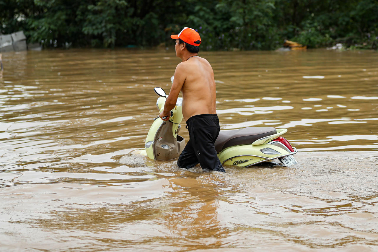 Từng chiếc xe máy liên tục được vận chuyển qua các vùng nước sâu.
