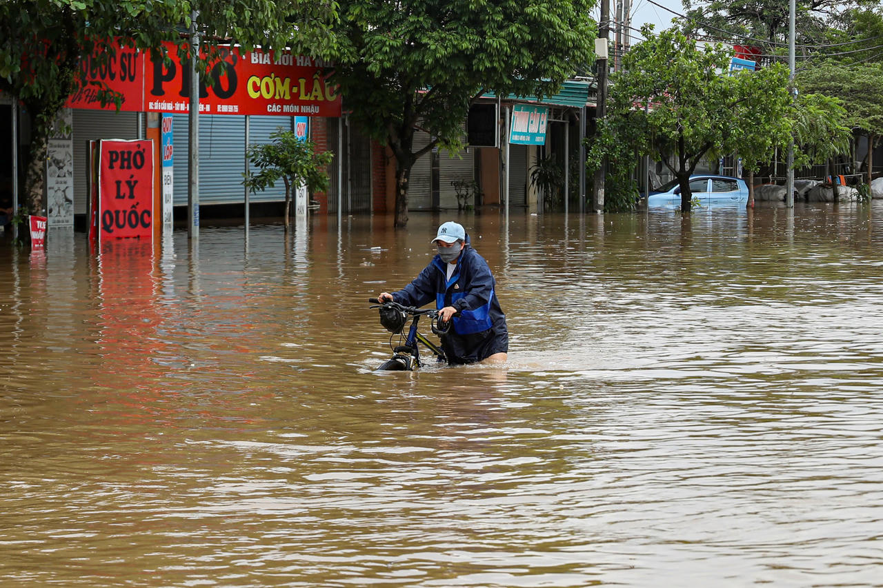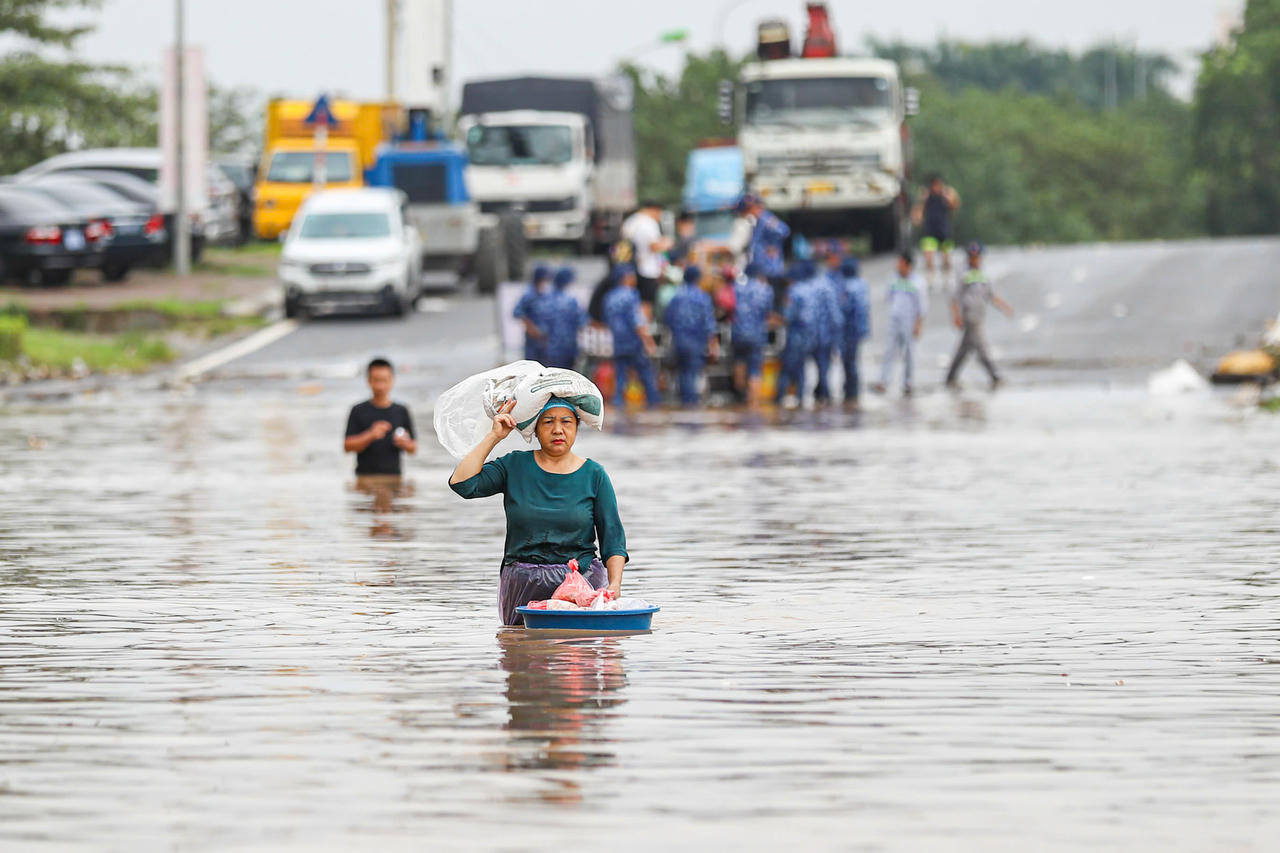 Thậm chí, để đi chợ mua thực phẩm người dân còn phải dùng chậu nhựa để tránh bị ướt khi vượt qua vùng ngập.