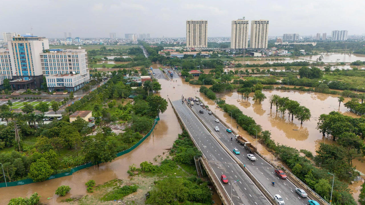 Theo ghi nhận của PV Báo Đại đoàn kết ngày 1/10, do ảnh hưởng bởi hoàn lưu bão số 10, khu vực hai bên đường gom Đại lộ Thăng Long vẫn xảy ra tình trạng ngập úng, nhiều phương tiện di chuyển khó khăn, giao thông ùn tắc kéo dài.