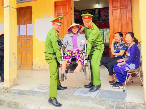 Cùng với công tác đảm bảo ANTT, tại một số điểm bầu cử, CBCS Công an TP Hà Nội còn hỗ trợ các cử tri cao tuổi bước lên xuống bậc thềm, đưa xe lăn vào khu vực bỏ phiếu…, hướng dẫn các cử tri hoàn thành quyền và nghĩa vụ công dân…