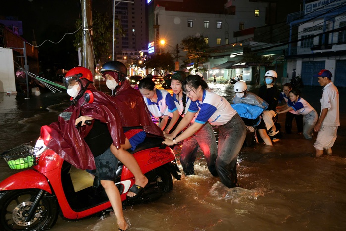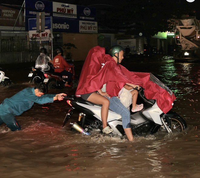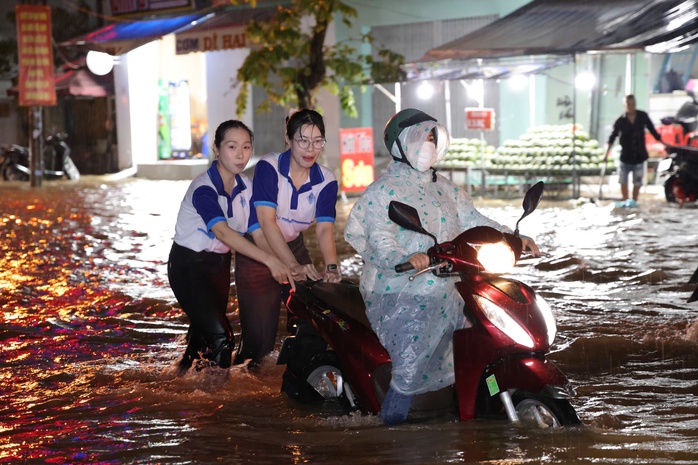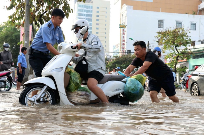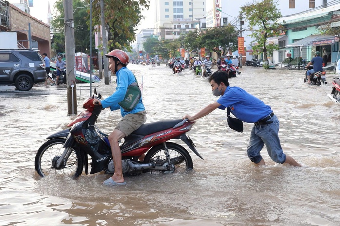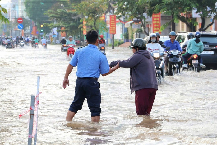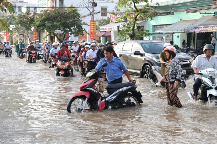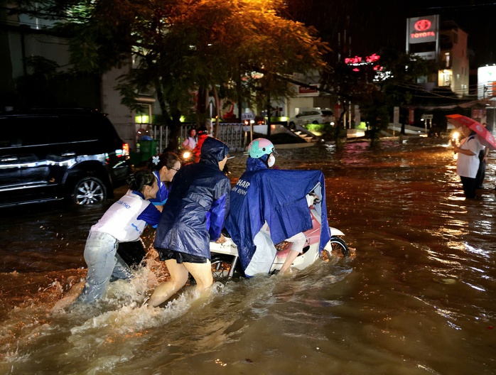 Việc di chuyển trở nên hết sức khó khăn đối với người dân trên các tuyến đường như: Cách mạng Tháng Tám, Nguyễn Văn Linh, Võ Nguyên Giáp… Nhiều phương tiện đã bị chết máy giữa dòng nước ngập.