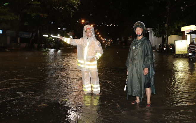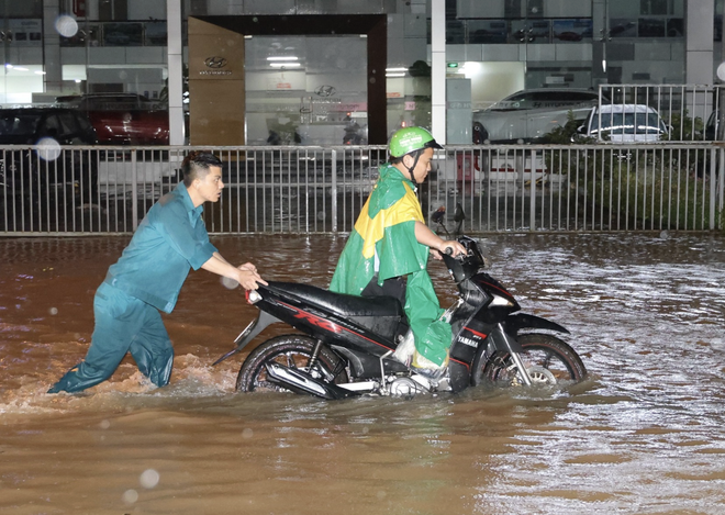 Bất chấp trời mưa, họ không ngần ngại lội nước, hỗ trợ đẩy xe bị hỏng, hướng dẫn người dân tìm lối đi an toàn, và thậm chí đưa trẻ em qua vùng ngập.