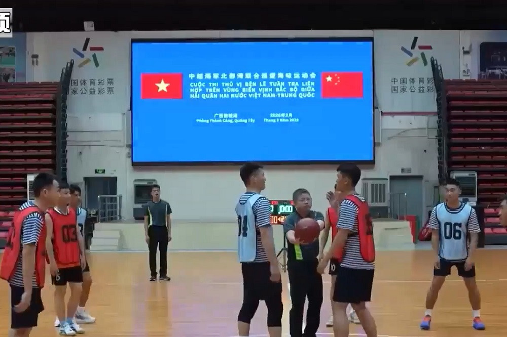 Trận bóng rổ giữa các thủy thủ Việt Nam và Trung Quốc. Ảnh: Trang quân sự 81 của Trung Quốc