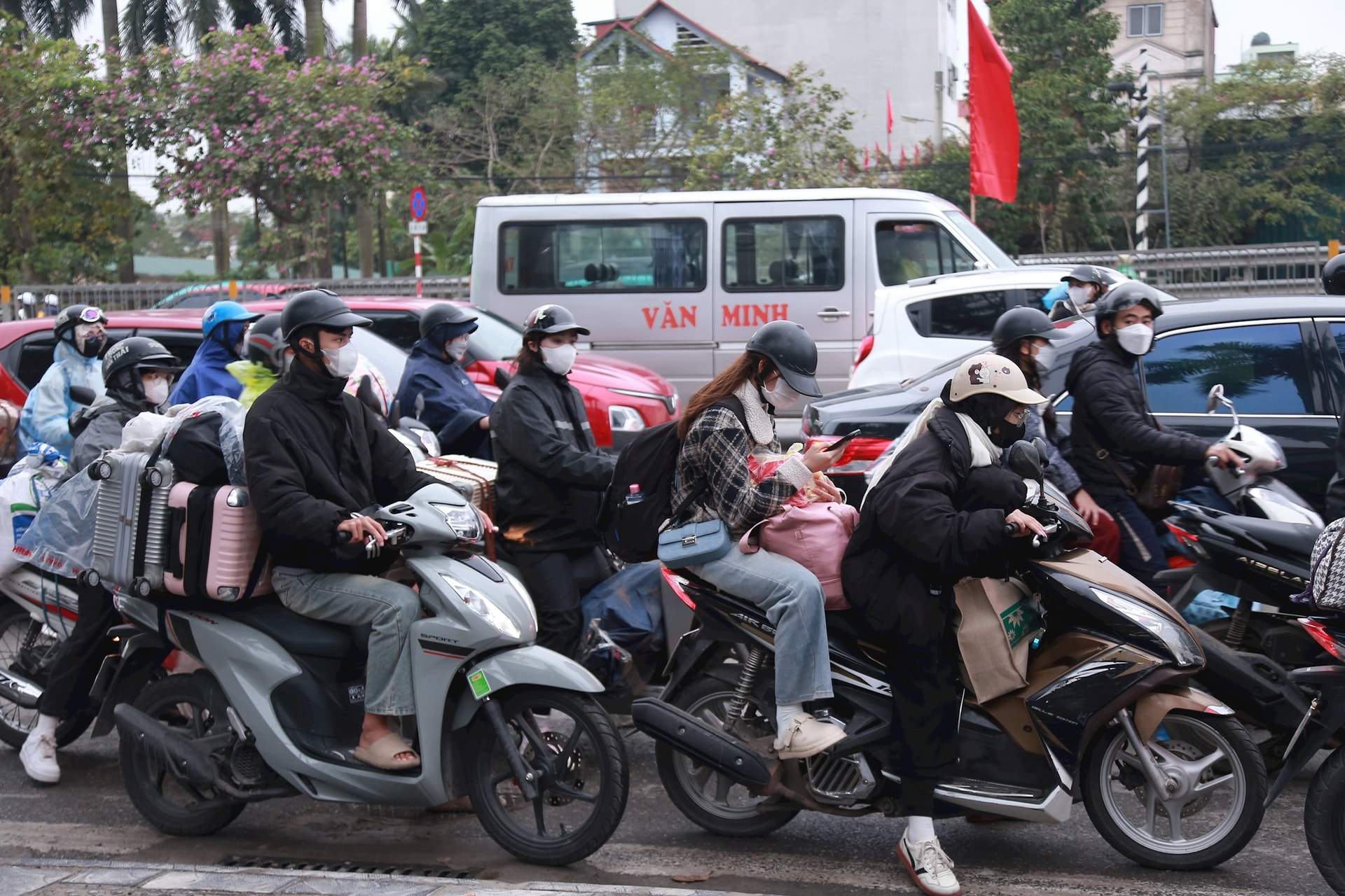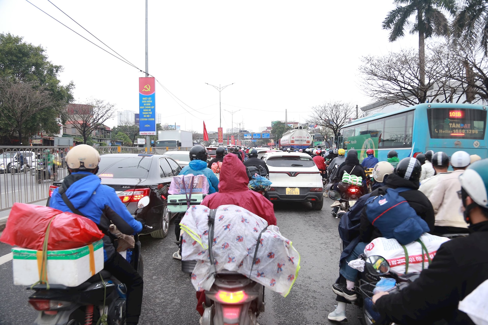 Từ đầu giờ chiều, lưu lượng phương tiện trên các tuyến cửa ngõ như Pháp Vân - Cầu Giẽ, Quốc lộ 1A, Quốc lộ 5, Đại lộ Thăng Long, cầu Thanh Trì… tăng mạnh. Dòng xe ô tô cá nhân, xe khách liên tỉnh nối đuôi nhau hướng về trung tâm thành phố. Tại một số thời điểm, phương tiện di chuyển chậm do mật độ đông, cộng thêm thời tiết mưa khiến mặt đường trơn trượt.