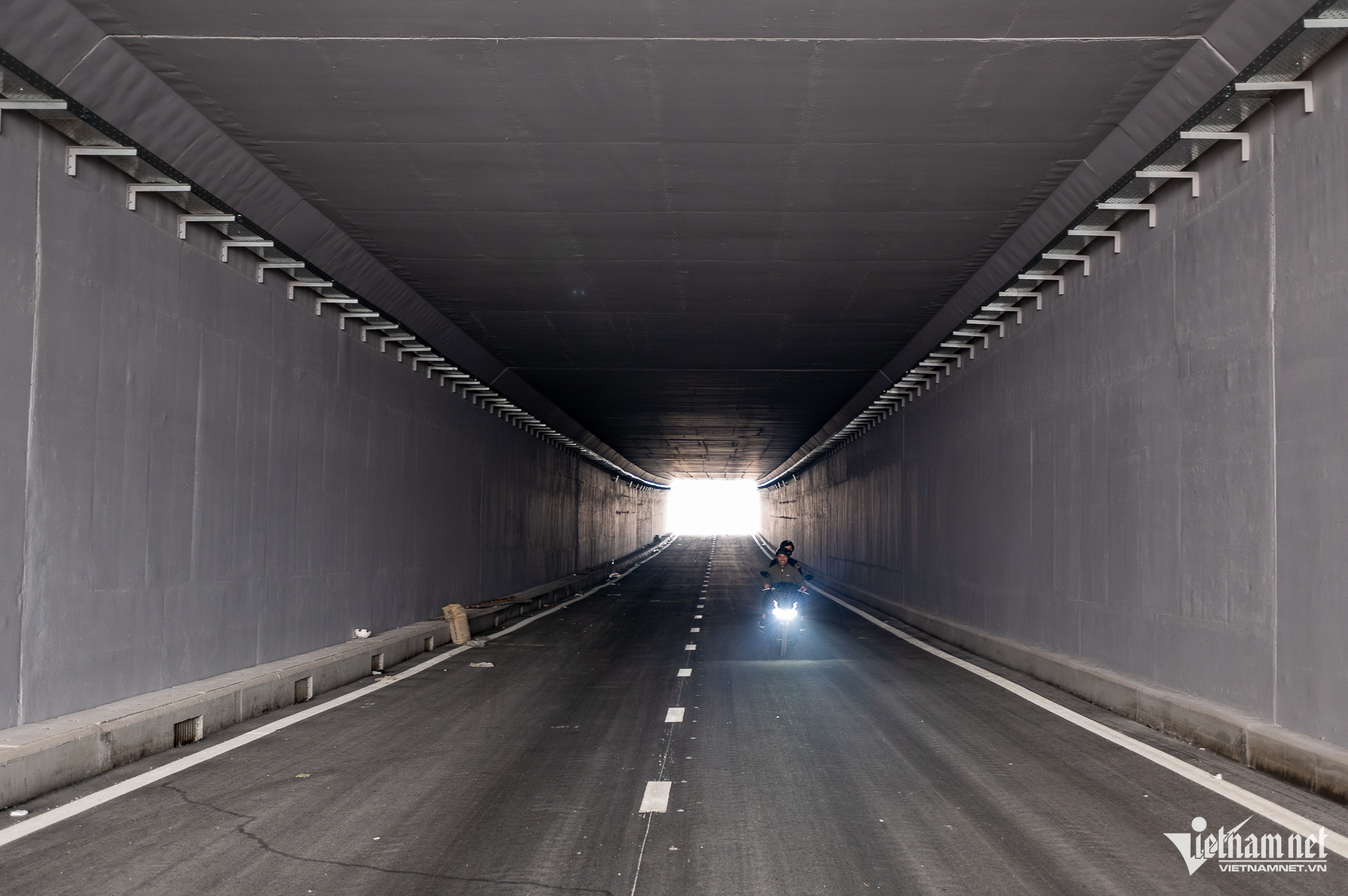 Toàn bộ hầm chui đã được thảm nhựa, sơn vạch kẻ đường và đang lắp đặt hệ thống chiếu sáng cùng hệ thống thoát nước.