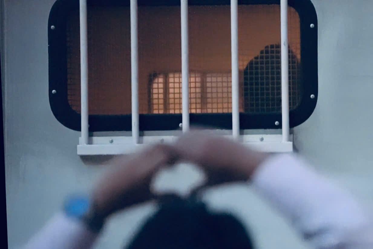 Mẹ của Thùy Tiên được cán bộ chiến sĩ công an đang làm nhiệm vụ hướng dẫn để được nhìn thấy con gái trước khi Thùy Tiên lên xe về trại giam.
