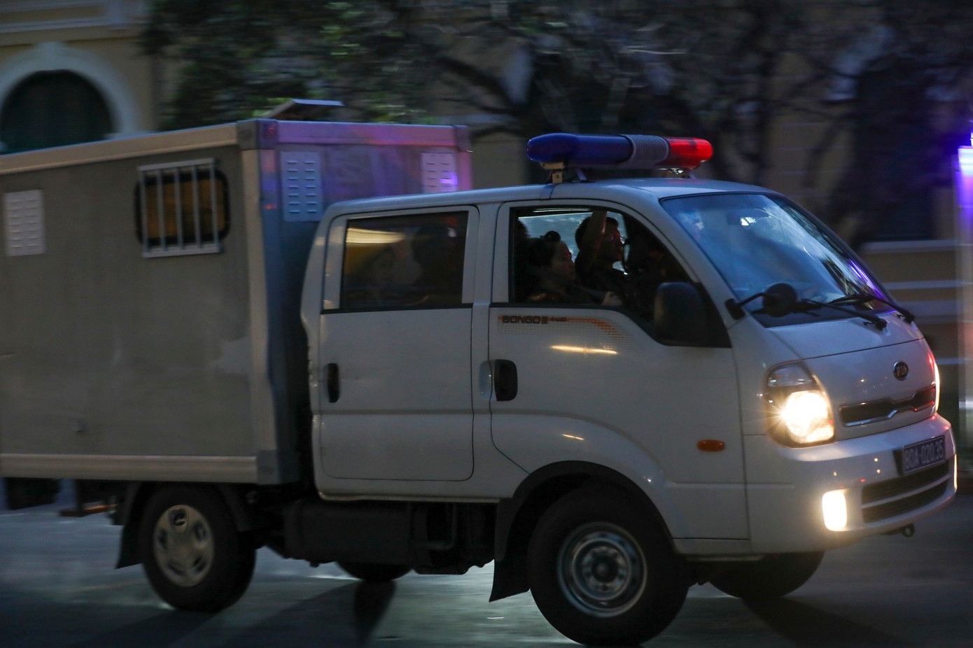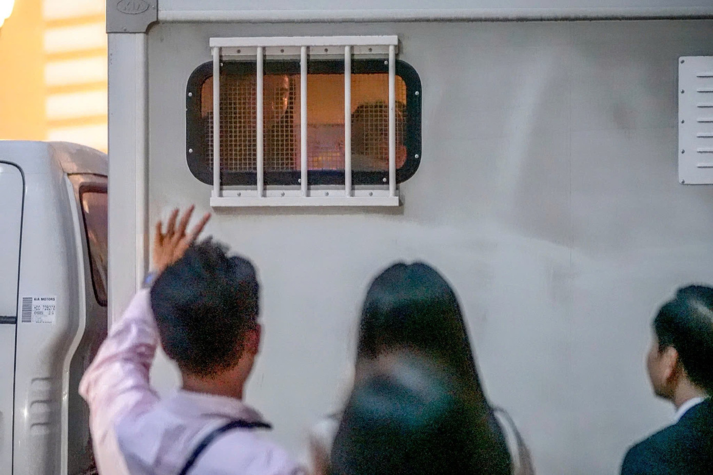 Gần 18h, xe chở các bị cáo rời tòa án và nhanh chóng trở về trại giam.