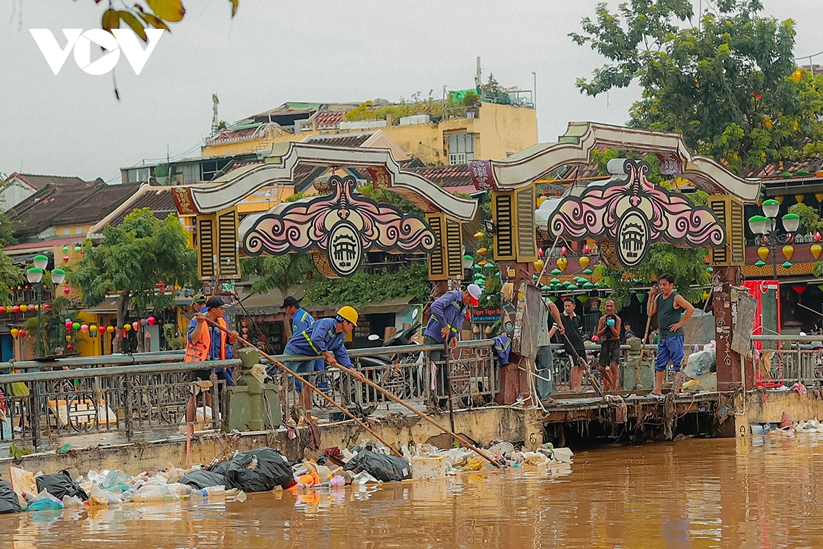 Dọn rác, khơi thông dòng chảy dưới cầu An Hội, rửa đường, dọn dẹp nhà cửa