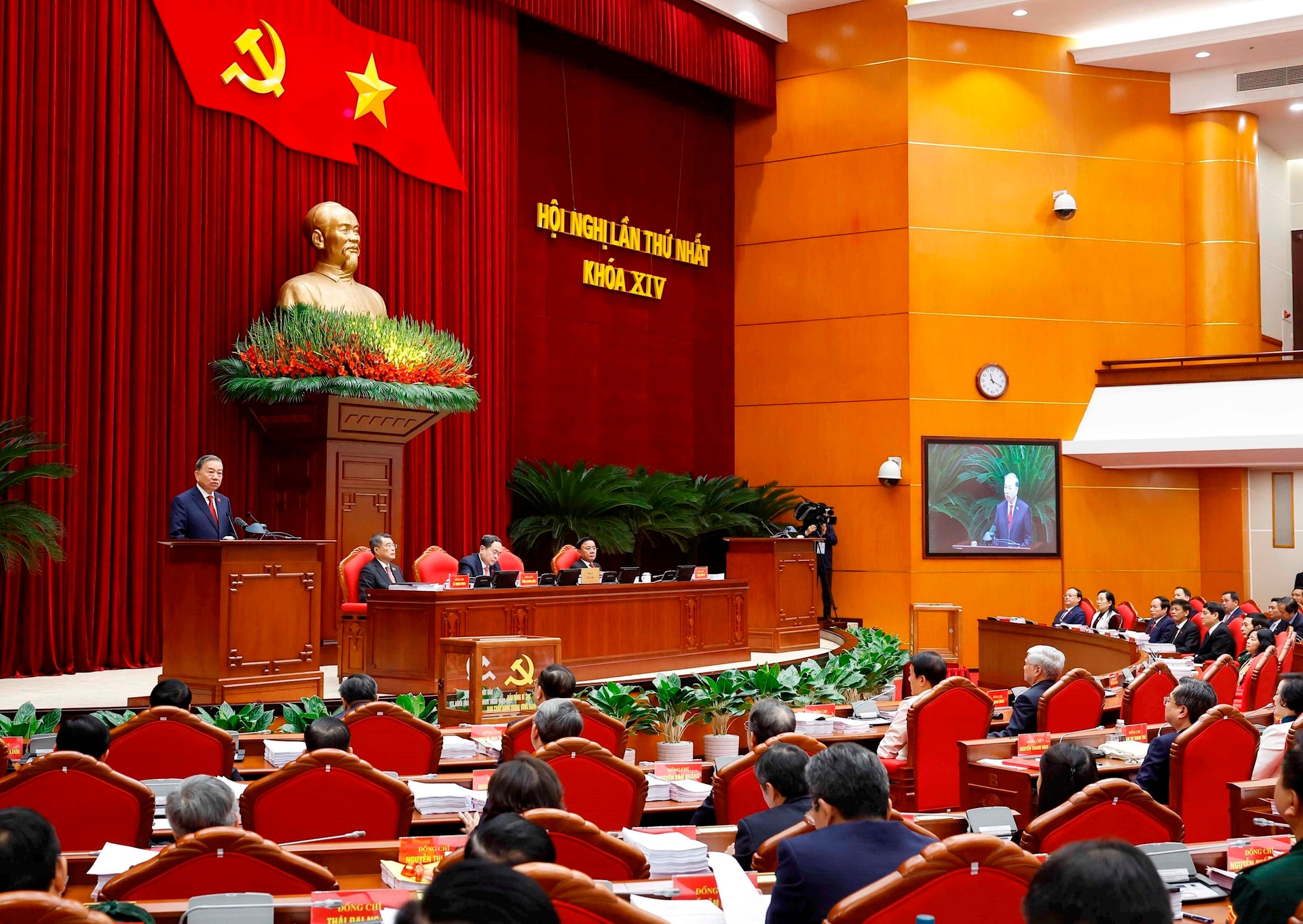 Tổng Bí thư Tô Lâm phát biểu tại Hội nghị lần thứ nhất Ban Chấp hành Trung ương Đảng khóa XIV. Ảnh: ĐH