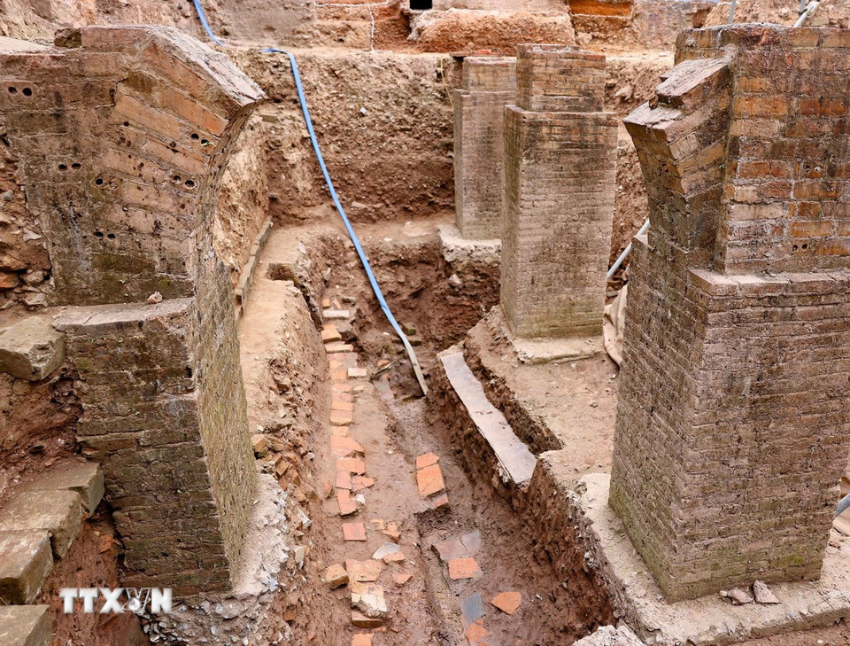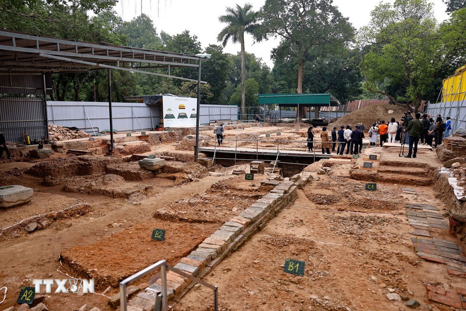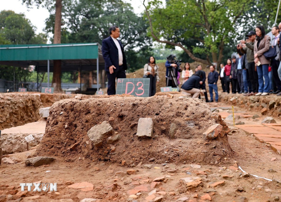 Cuộc khai quật đã làm sáng tỏ quy mô và nền móng kiến trúc Chính điện Kính Thiên thời Lê, điện Long Thiên thời Nguyễn và lần đầu tiên phát hiện dấu tích văn hóa thời Lý, Trần, Tiền Thăng Long ở đây. (Ảnh: Thanh Tùng/TTXVN)