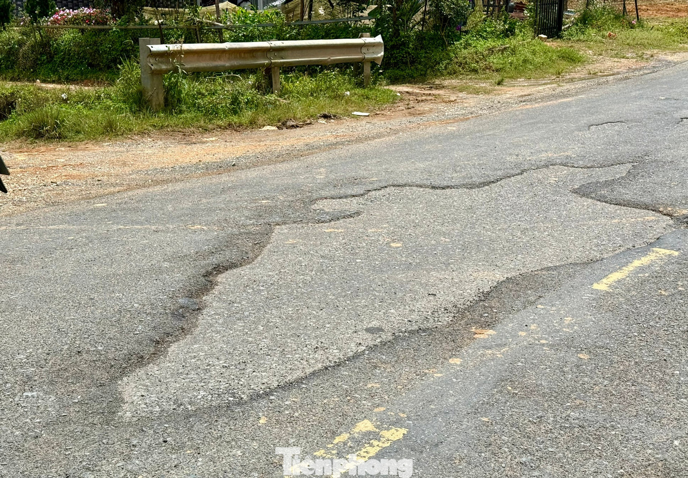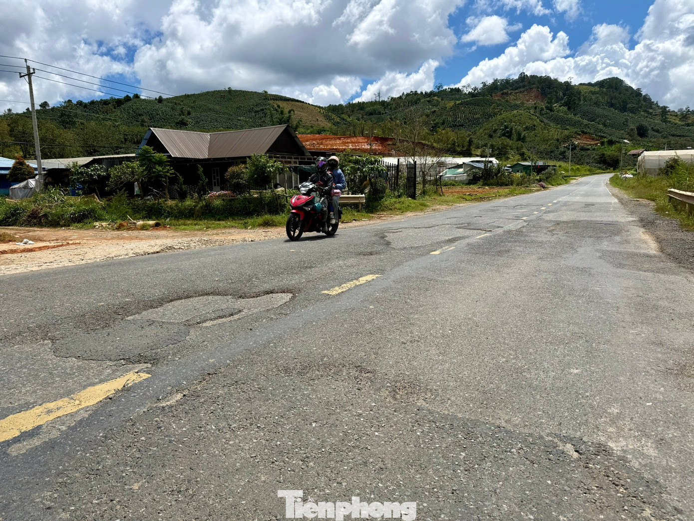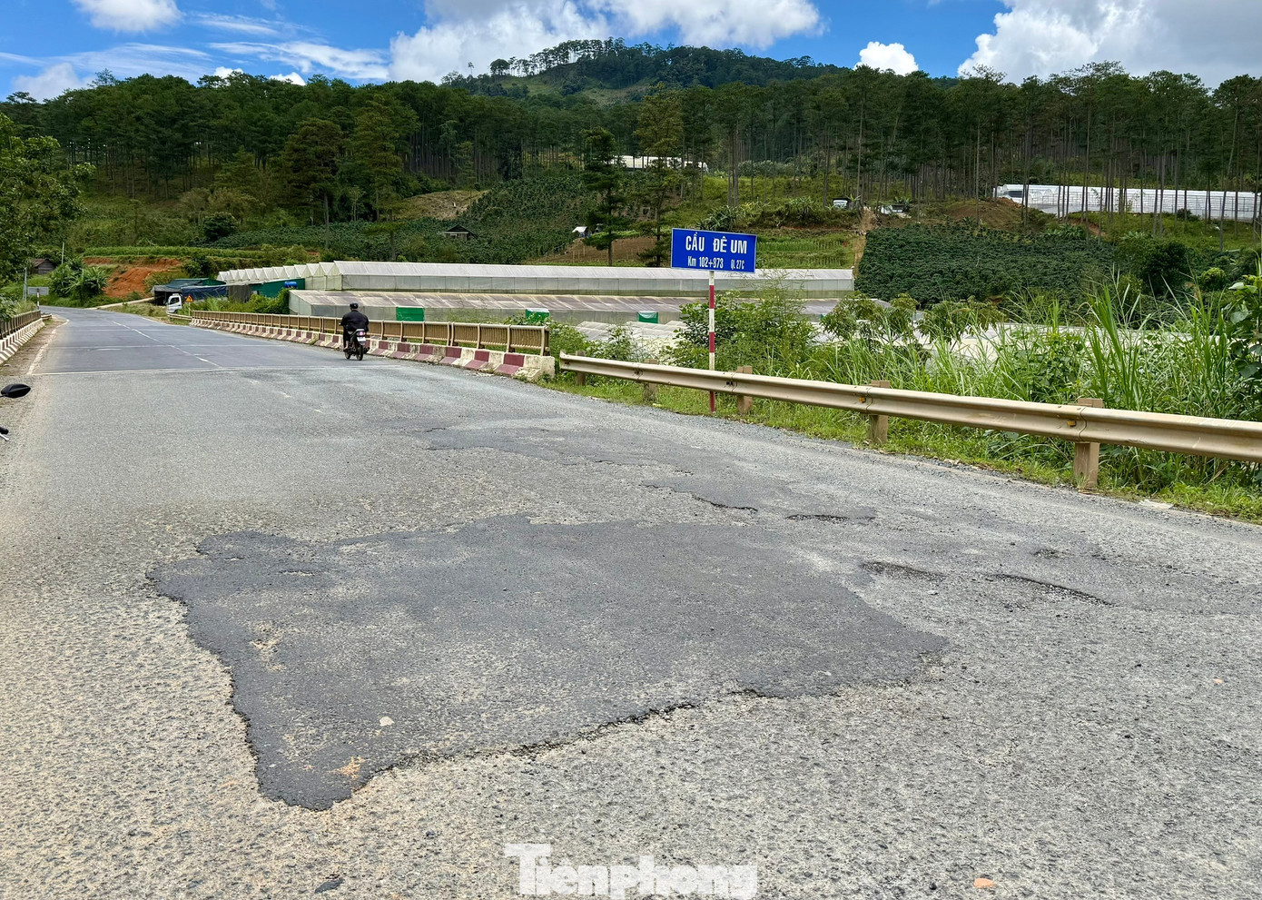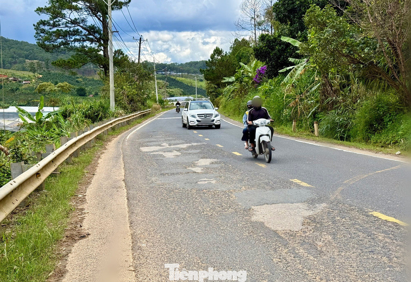 Theo phóng viên ghi nhận, từ Km100 đến Km105 quốc lộ 27C (đoạn qua xã Lạc Dương) xuất hiện nhiều ổ gà, mặt đường hư hỏng gây khó khăn cho việc đi lại và tiềm ẩn nguy cơ tai nạn giao thông.