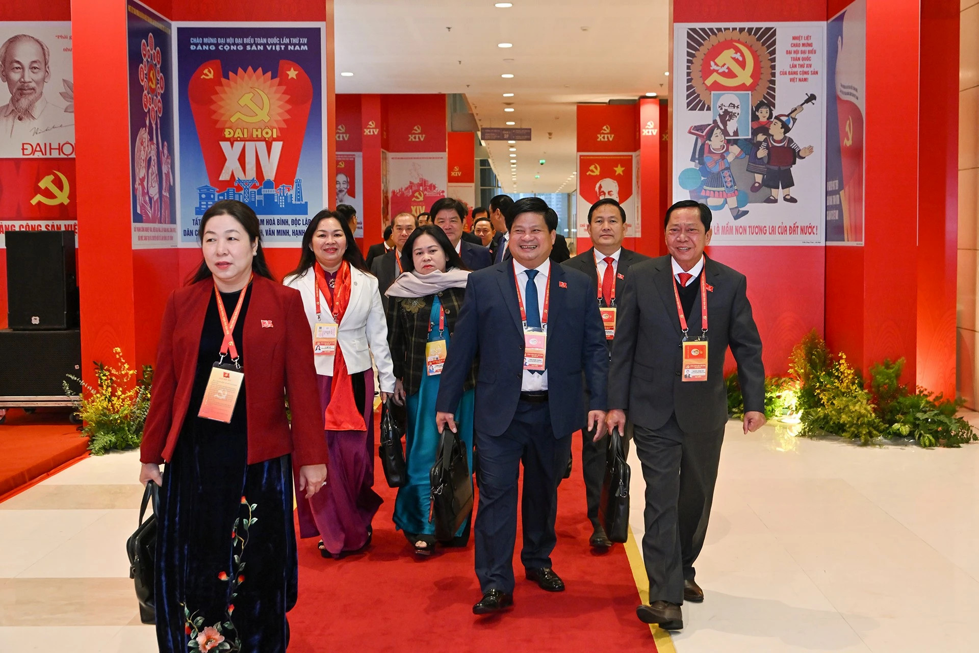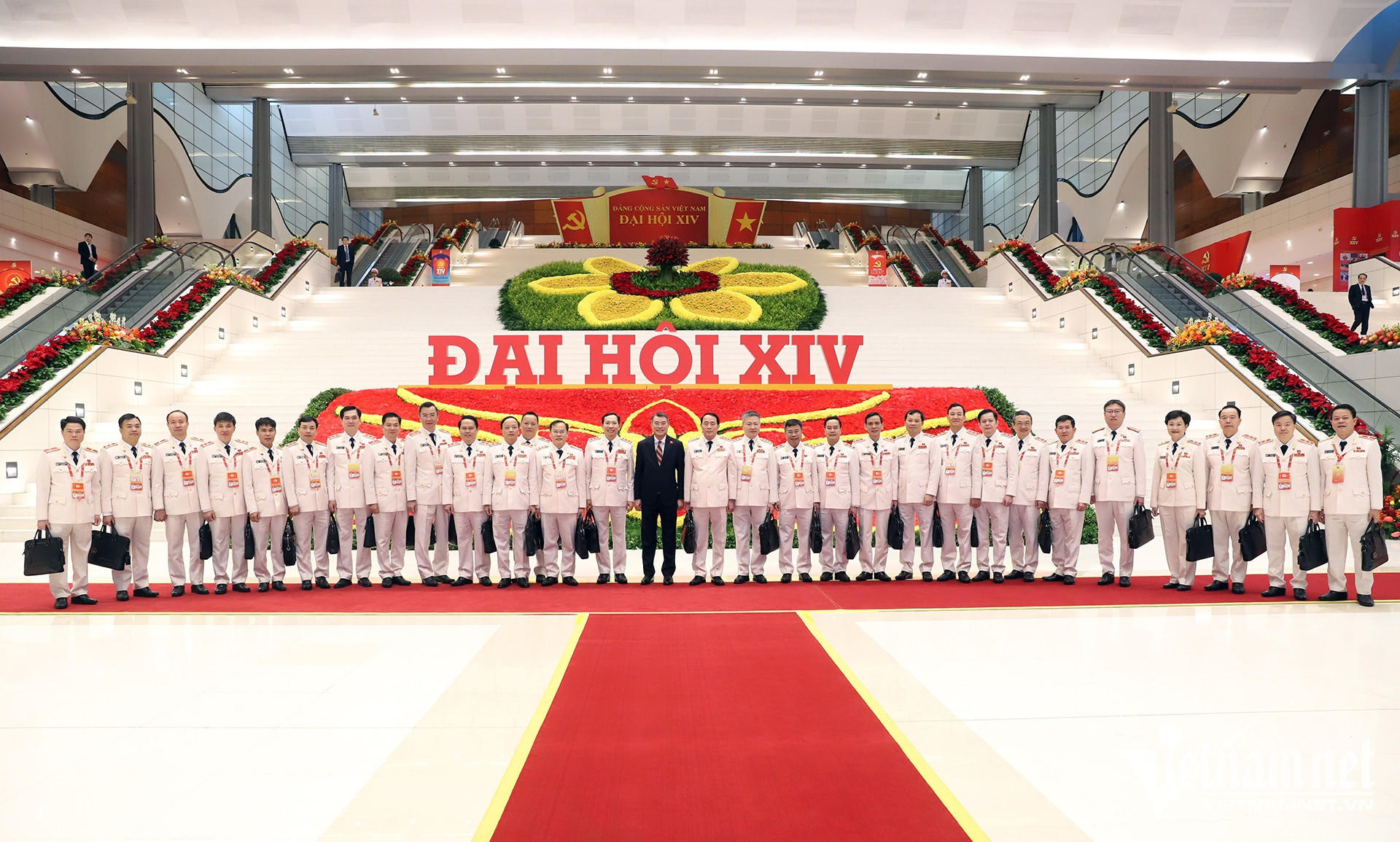 Các đại biểu thuộc Đảng bộ Công an Trung ương đến dự ngày làm việc thứ ba của Đại hội. Ảnh: TTXVN
