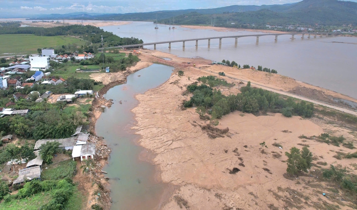 Trong khi đó, theo ông Lê Văn Mười, lòng sông Ba vốn dĩ kéo vào tận đoạn sông được cho là do nước lũ tạo thành hiện nay. Do ở giữa khu vực này có một bãi bồi nên trước đây cơ quan chức năng đã xây dựng bờ kè chắn ngang nhánh sông để đầu tư dự án. Đợt mưa lũ vừa qua, một đoạn bờ kè bị cuốn trôi nên nước tiếp tục chạy vào, khoét rộng thêm.