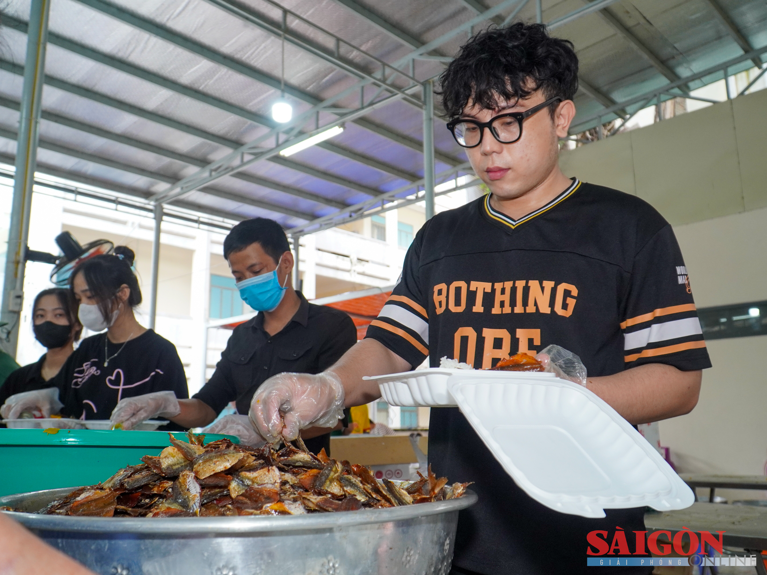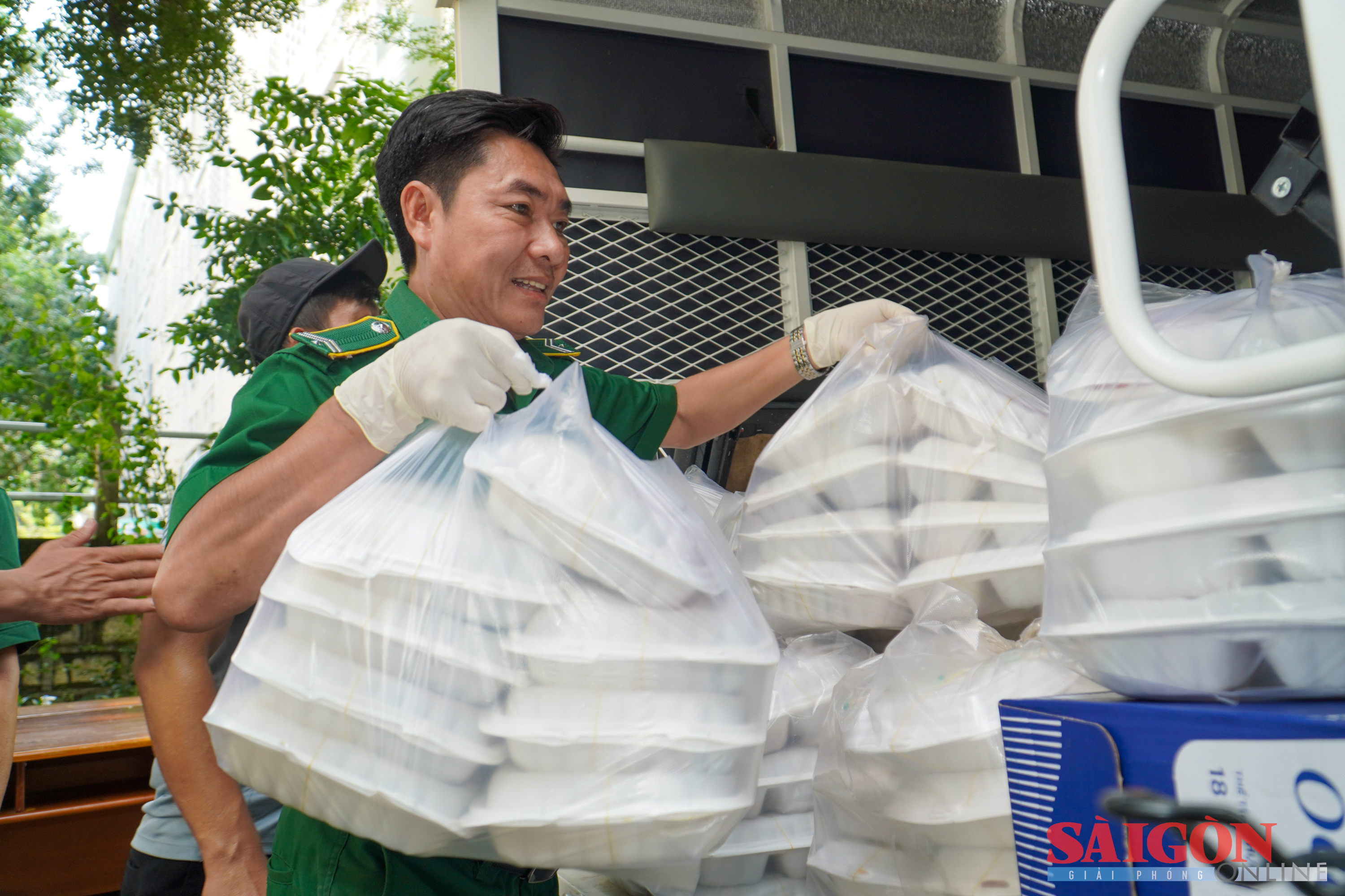 Mỗi hộp cơm nóng được trao tận tay như một lời động viên thầm lặng
