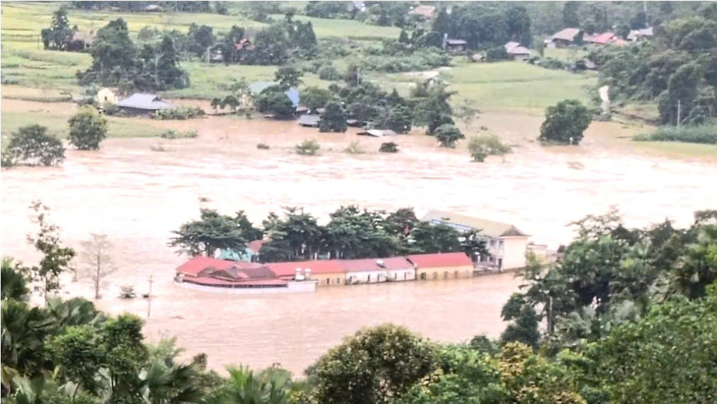 Sau trận lũ quét do hoàn lưu bão số 10, Trường Phổ thông Dân tộc Bán trú Tiểu học B Thuận Hòa (xã Thuận Hòa, tỉnh Tuyên Quang) bị ngập nặng.
