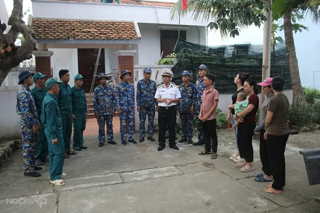 Chỉ huy đảo Song Tử Tây tuyên truyền về bão số 13 (Kalmaegi) cho các hộ dân trên đảo. (Ảnh: Ngọc Ánh)