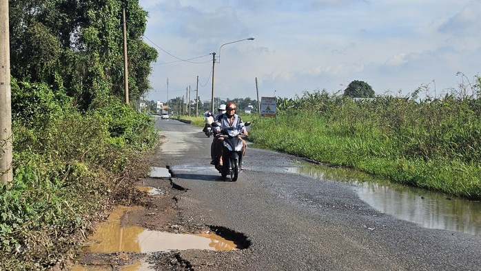 Nhiều đoạn, hai bên đường xuất hiện những hố sâu, mỗi khi mưa lớn nước đọng lại thành vũng, người đi xe máy bị vồ ếch là điều không tránh khỏi