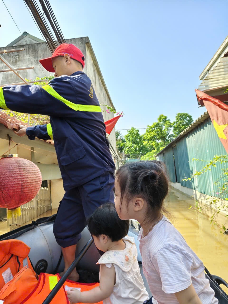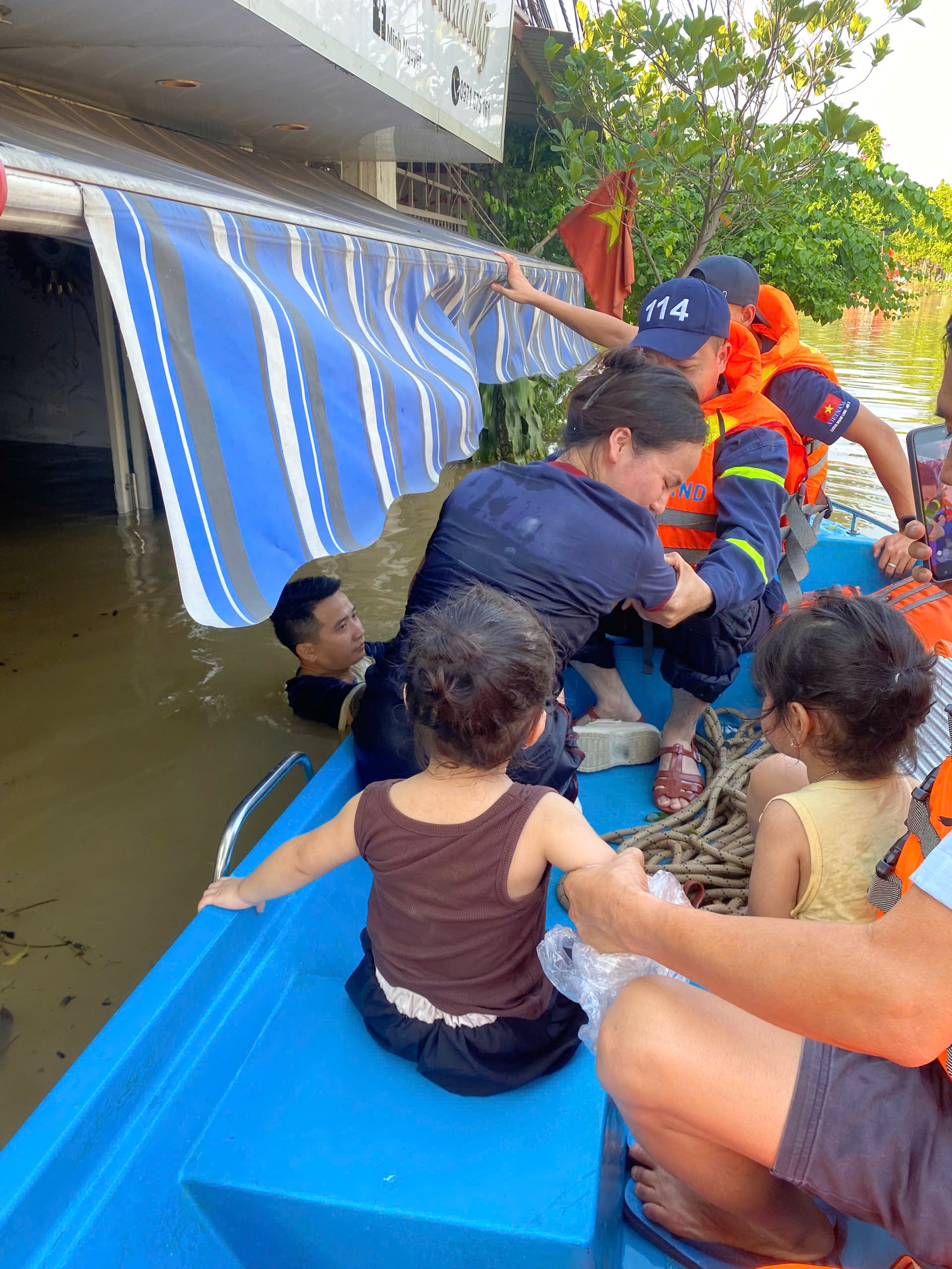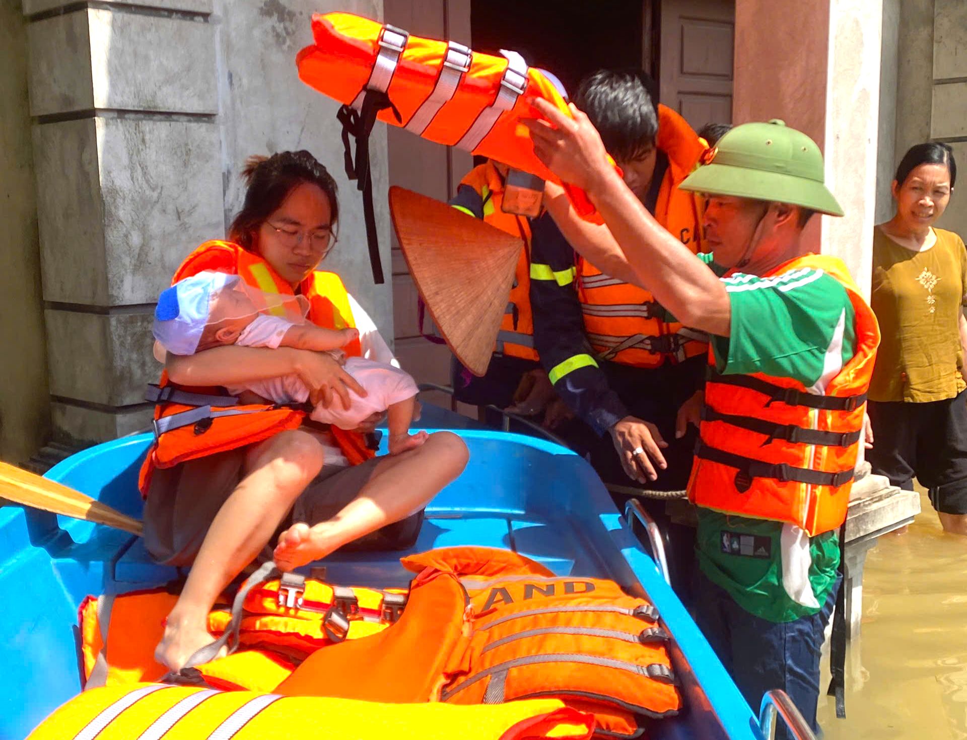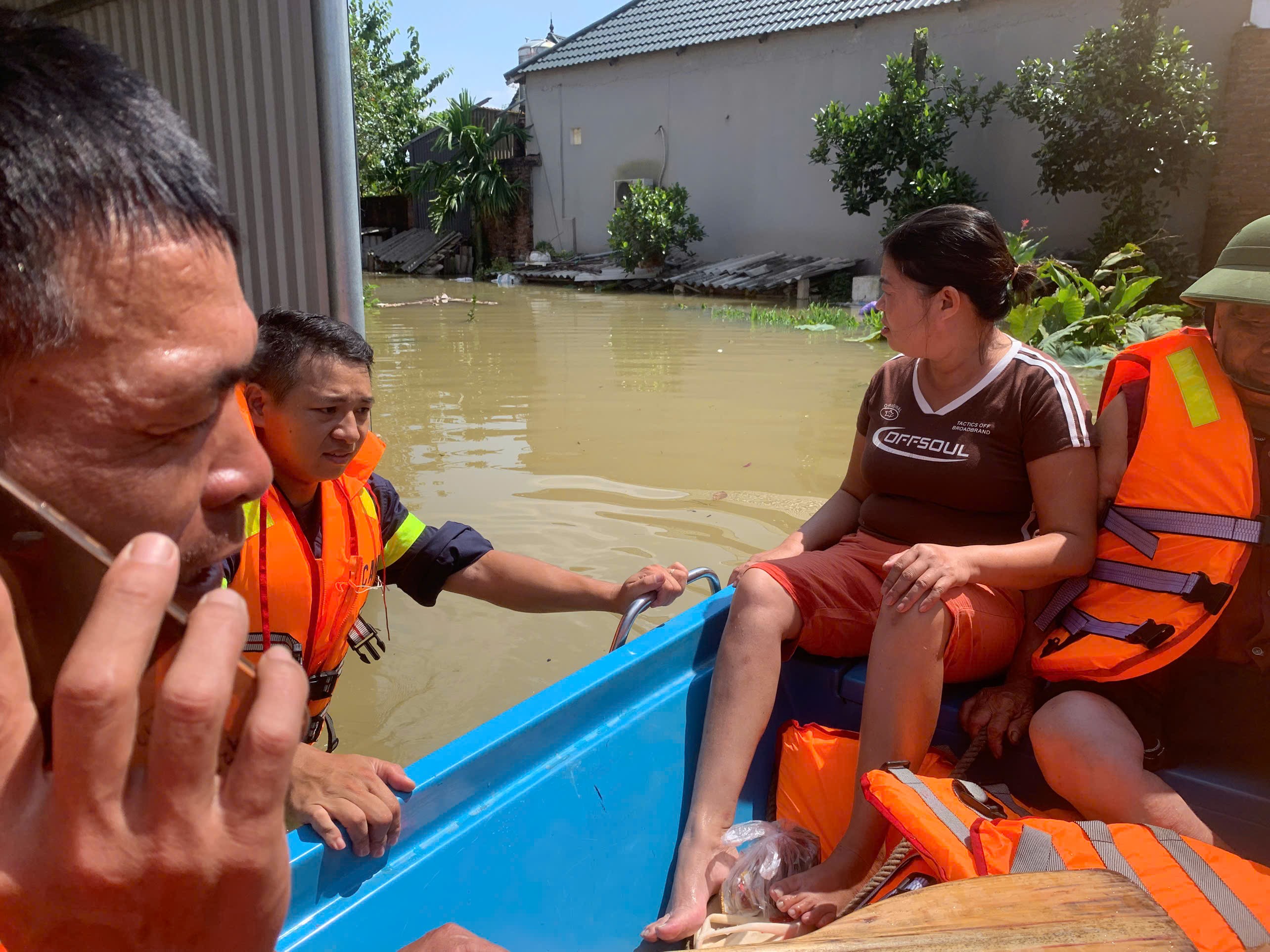 Một chuyến thuyền cứu hộ đưa người dân sơ tán khỏi chính tổ ấm của họ