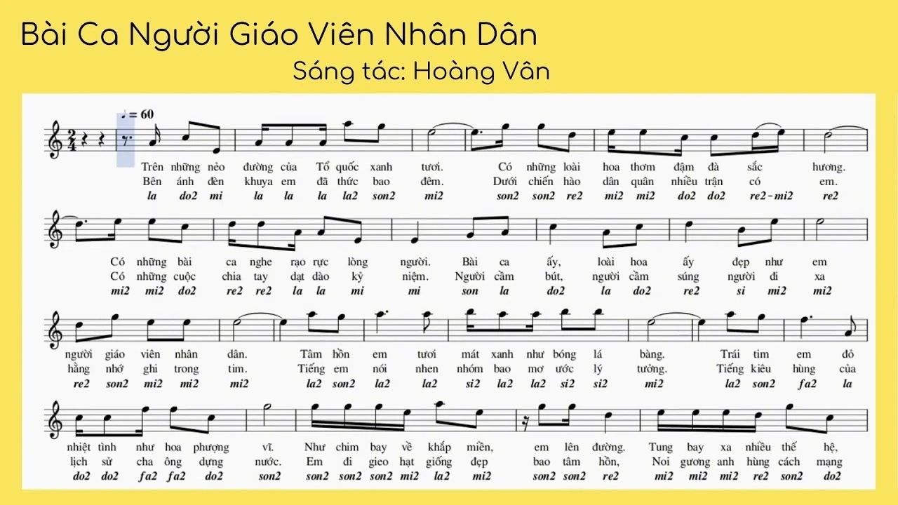 Bản nhạc ca khúc: Bài ca người giáo viên nhân dân - Sáng tác: Hoàng Vân
