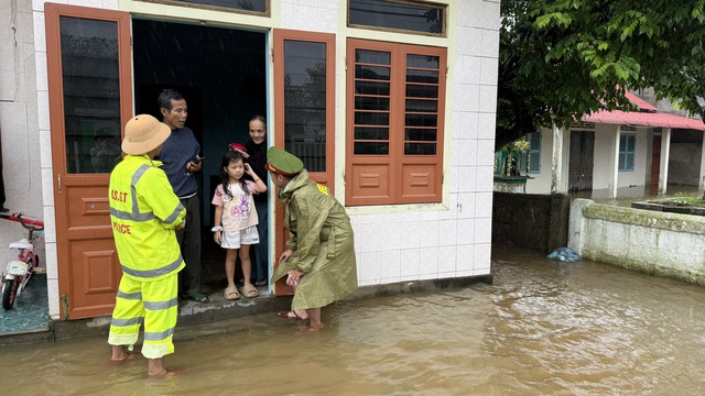 Lực lượng Công an tỉnh Quảng Trị có mặt tại các điểm ngập lụt, hỗ trợ người dân và triển khai các biện pháp đảm bảo an toàn