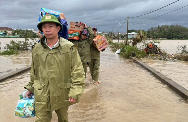 Những chiếc bánh chưng, thùng mì tôm, lương khô, nước uống, quần áo ấm, chăn chiếu, thuốc men... đã được lực lượng chức năng và các đoàn thiện nguyện trao tận tay cho người dân.