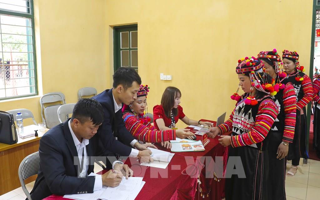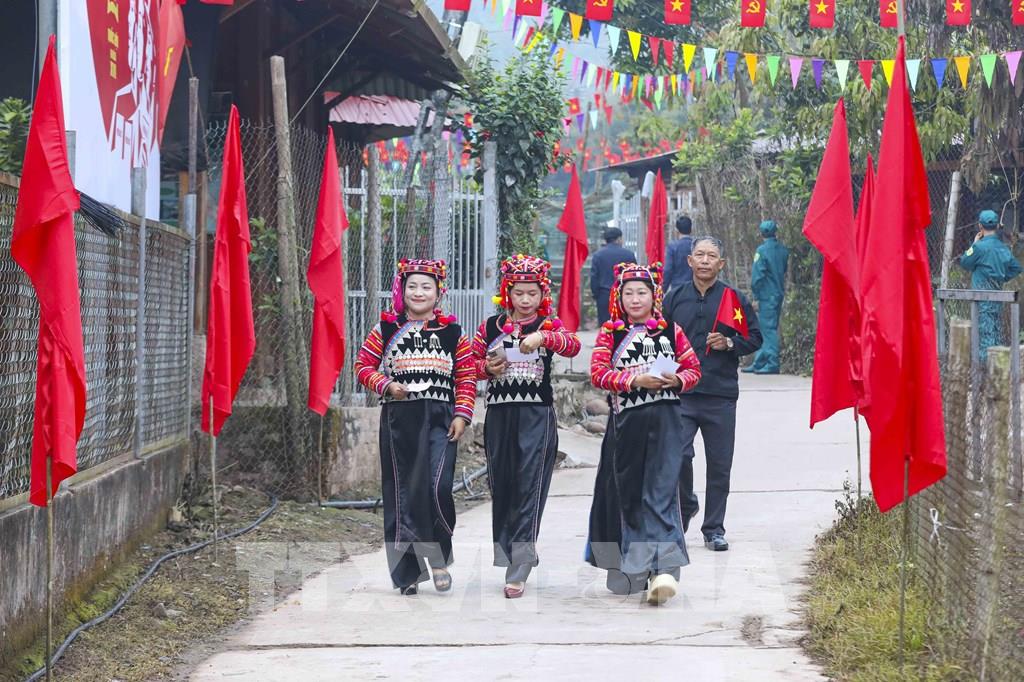 Tại điểm bầu cử số 19, thôn Tân Phúc (xã Đoài Phương, Hà Nội), trong không khí rộn ràng của Ngày hội non sông diễn ra trên khắp cả nước, hơn 100 cử tri là đồng bào các dân tộc đang sinh hoạt thường xuyên tại Làng Văn hóa - Du lịch các dân tộc Việt Nam đã nô nức tham gia đi bầu cử Đại biểu Quốc hội khóa XVI và Đại biểu Hội đồng nhân dân các cấp nhiệm kỳ 2026 - 2031. Ảnh: TTXVN