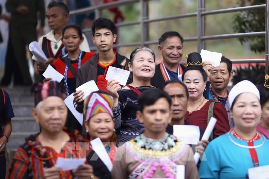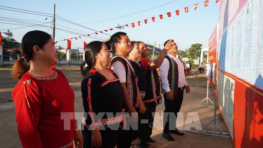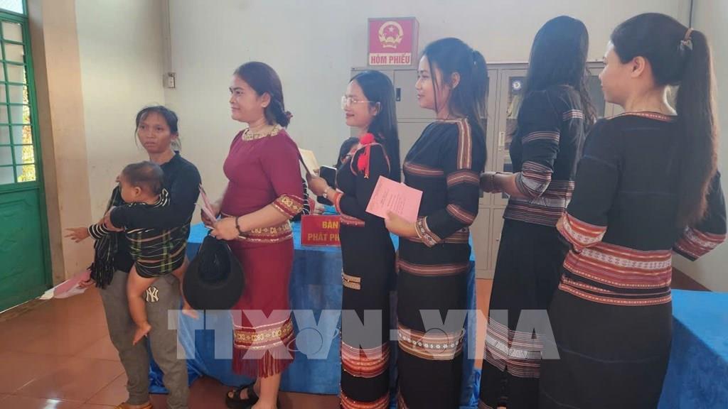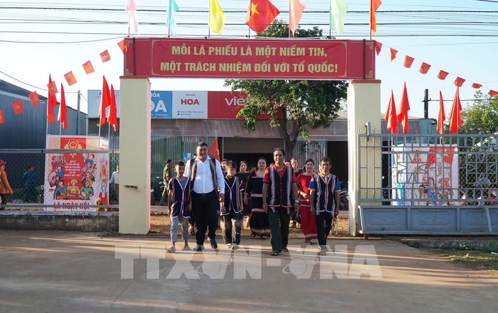 Đông đảo bà con đồng bào thiểu số xã biên giới Ia Dom đi bầu cử ngay từ sáng sớm. Ảnh: Hoài Nam - TTXVN